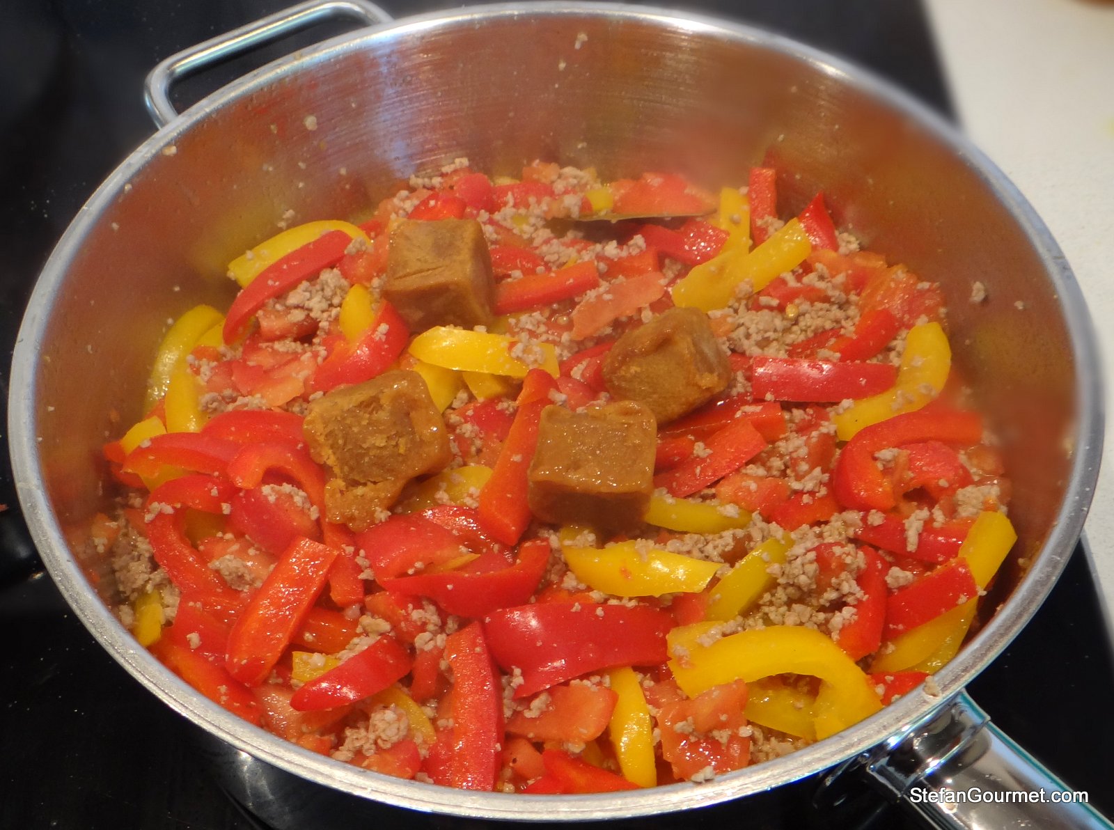 The recipe is traditionally prepared with lamb shoulder cut into small cubes. I used minced lamb instead since that is what I had, but next time I will try it with the cubed lamb for a slightly different mouthfeel (the minced lamb is kind of ‘grainy’). To enhance the lamb flavor, I added some concentrated lamb stock that I have in my freezer. When I make stock, I always make a lot, simmer it down to concentrate it, and then freeze it in ice cube trays.
