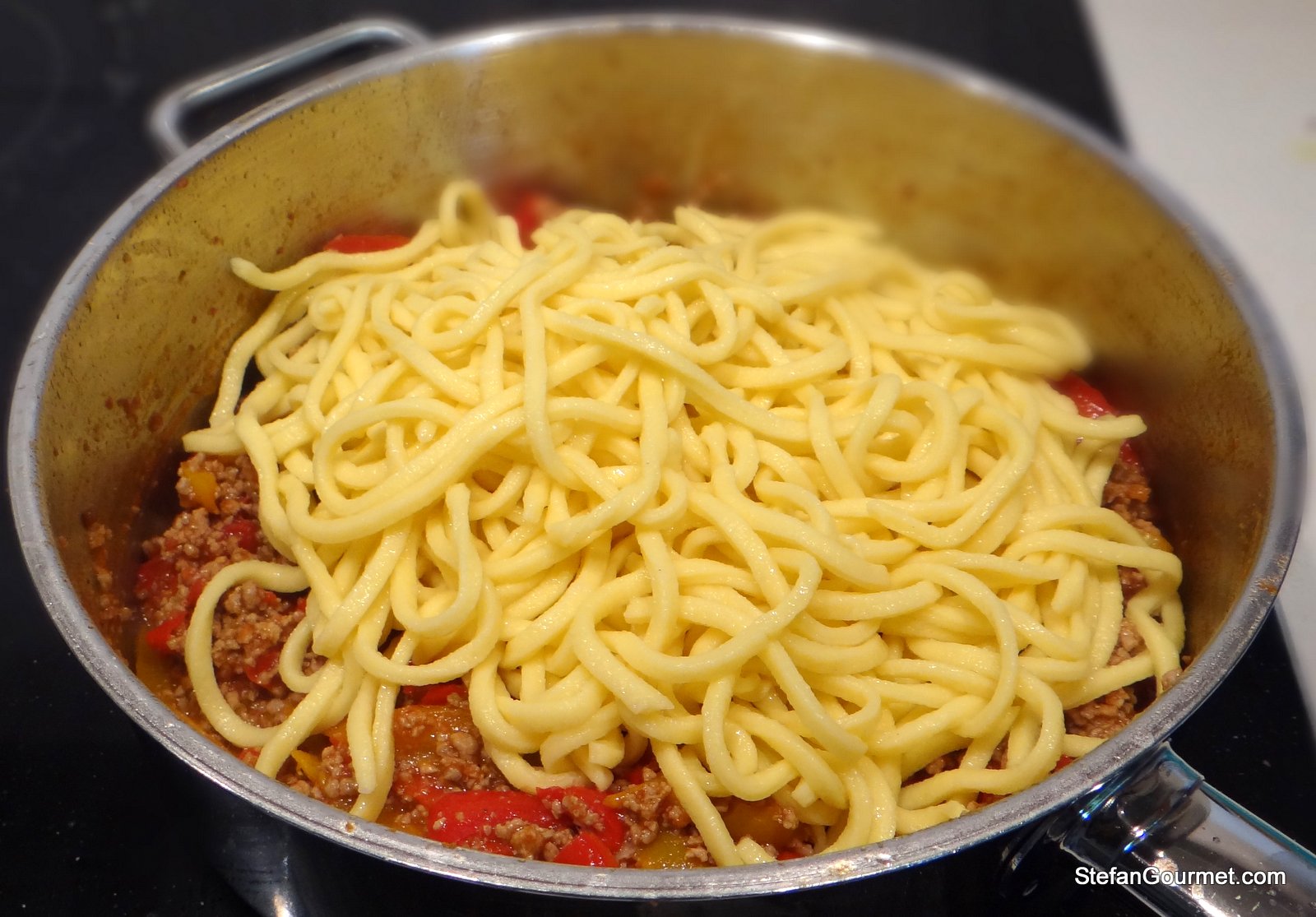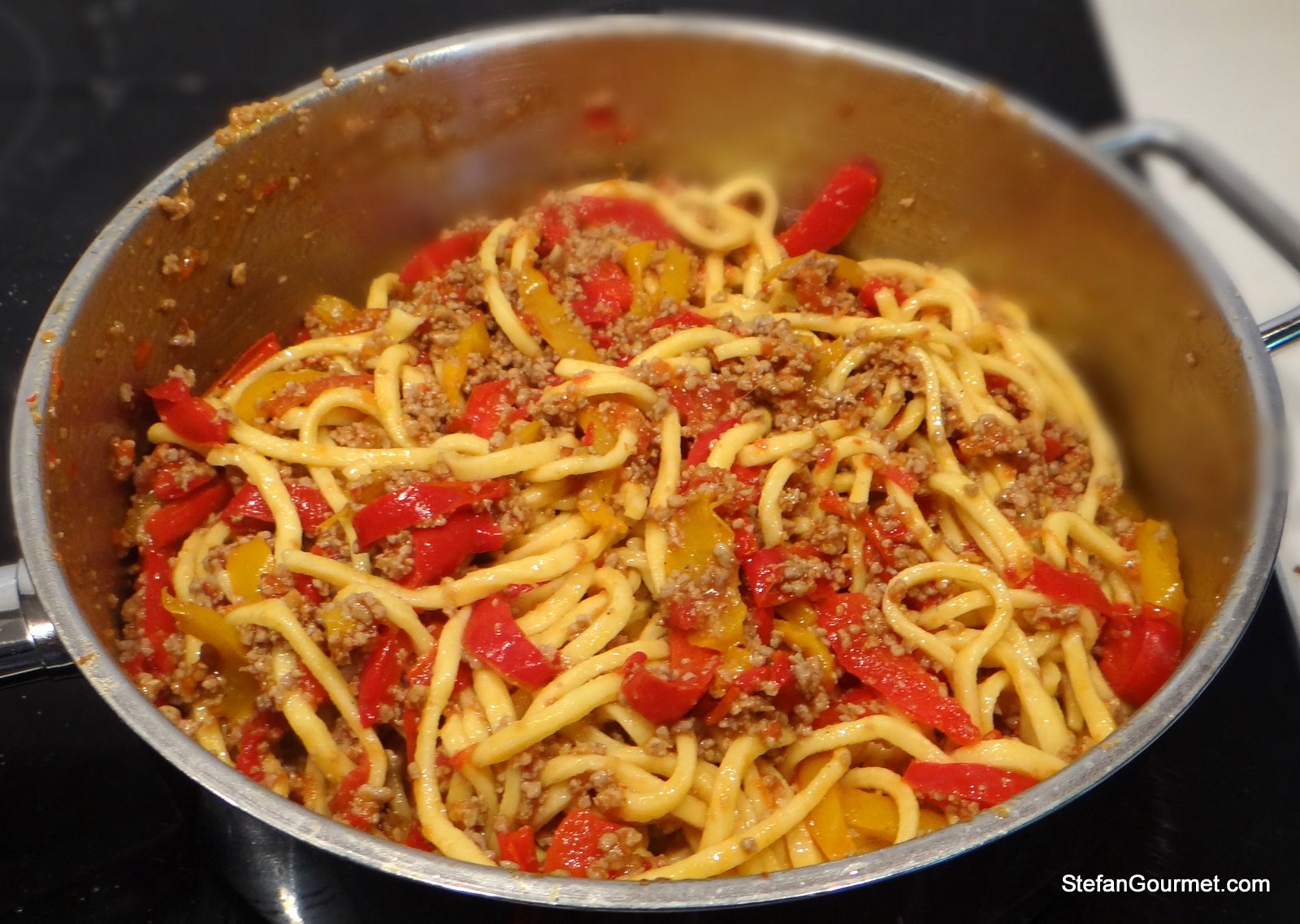 3. A great post, Stefan. I wrote about tonnarelli, too, but my pasta machine’s “angel hair” cutter will have to do. The pasta is square even if not the right thickness. I have enough pasta gadgets and don’t need to buy a chitarra, too. I really do need to experiment with a lamb sugo. My family enjoyed lamb but I don’t recall them ever using it to build a tomato sauce. Perhaps cost was a factor. No matter. This dish you prepared looks delicious and is one I would definitely enjoy, especially the use of bell peppers, 🙂