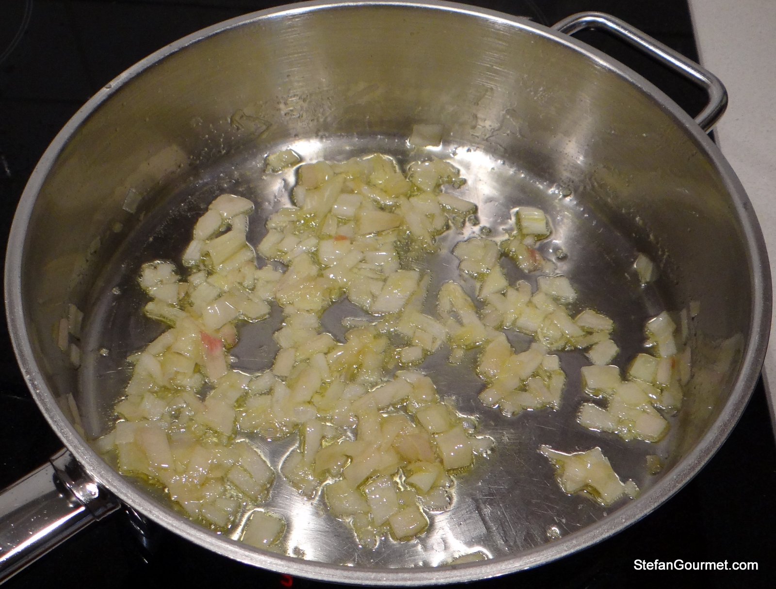 Meanwhile, sauté the shallot in the olive oil until soft and fragrant.