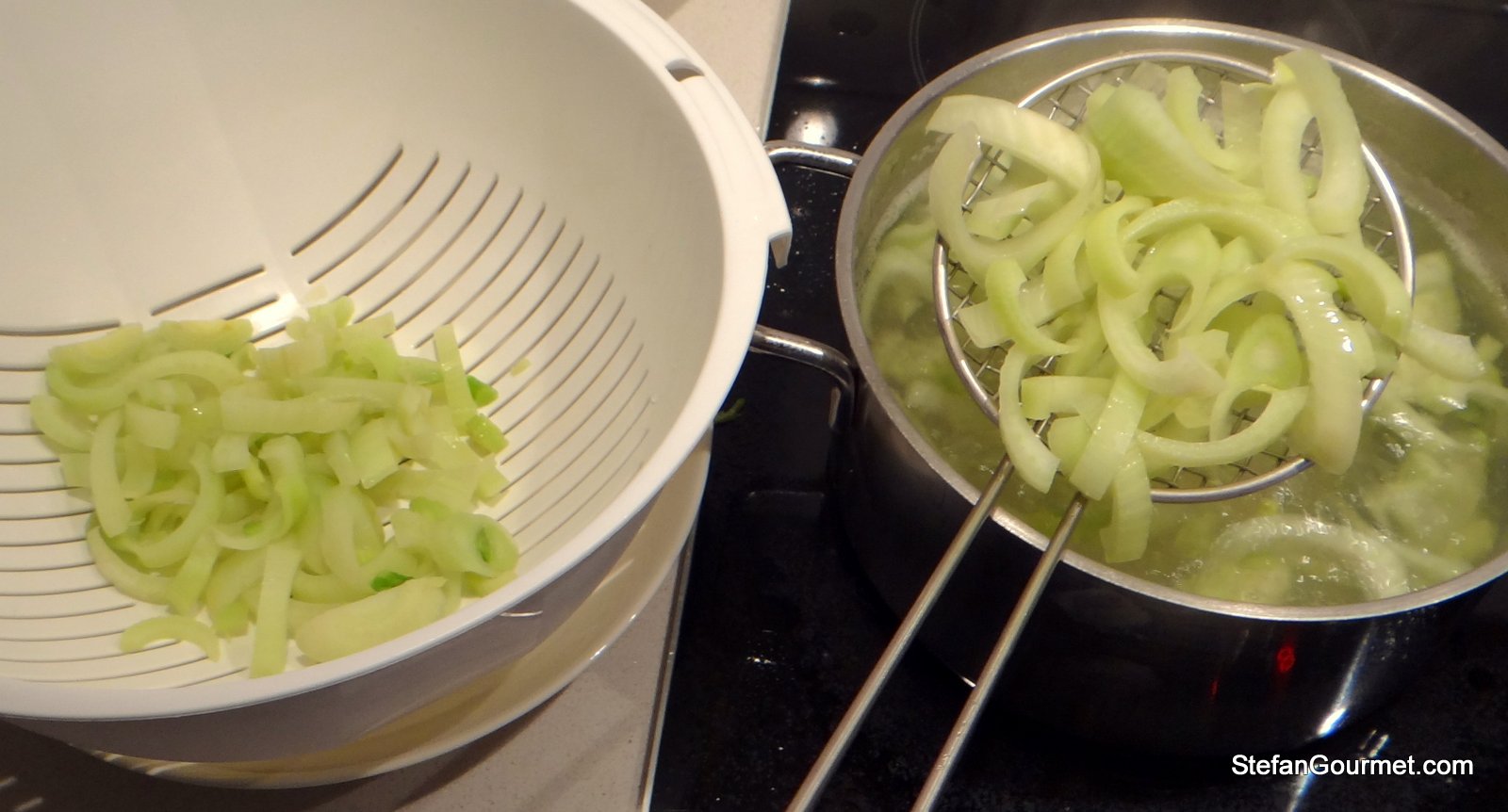 Take the fennel out of the boiling water and allow excess water to drain away.