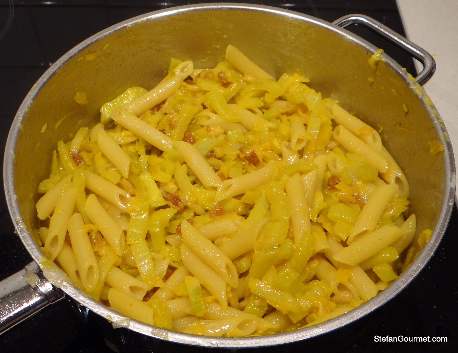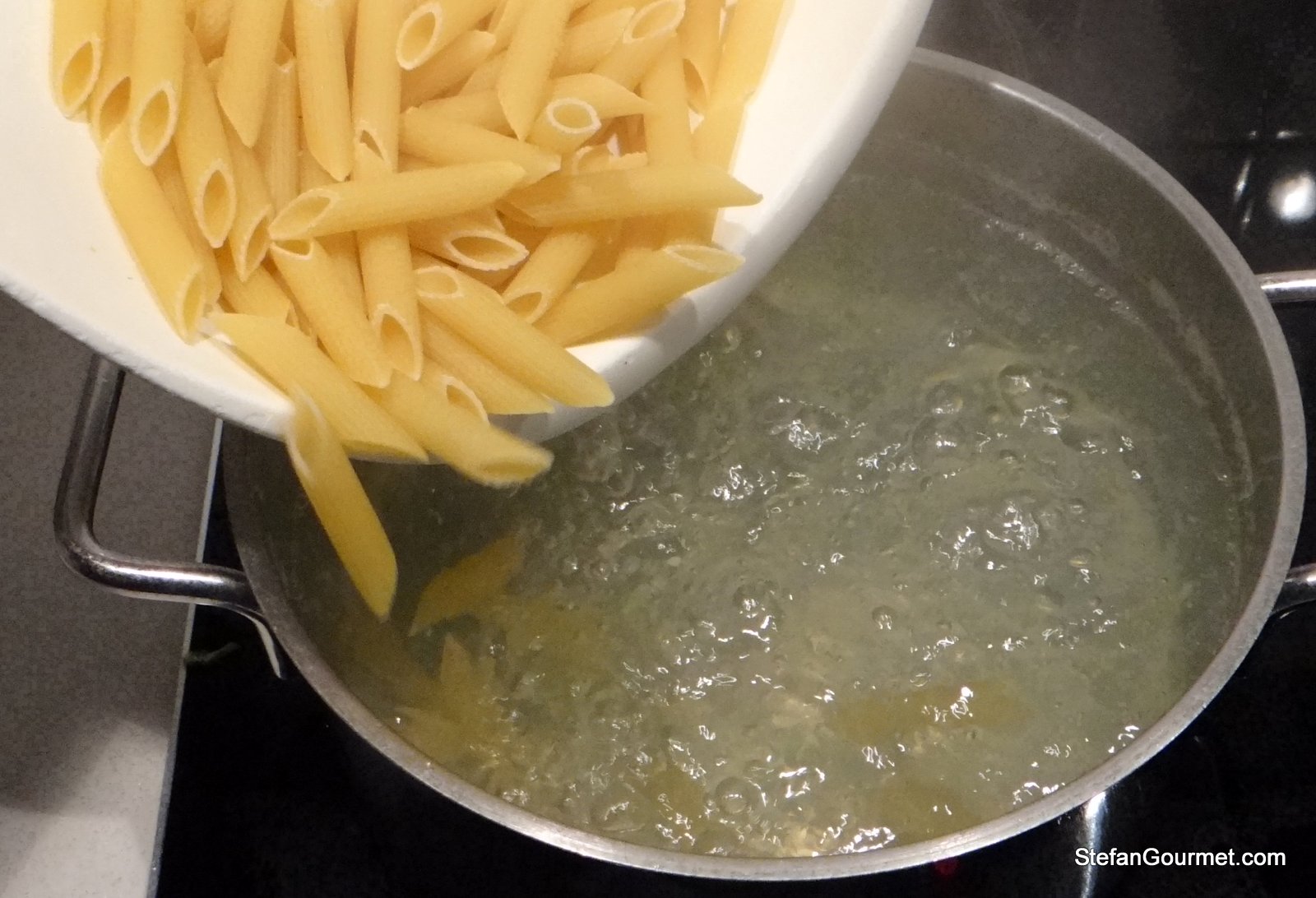 Add the pasta to the water in which the fennel has been cooked. Add some salt as well and cook the pasta al dente according to package instructions.
