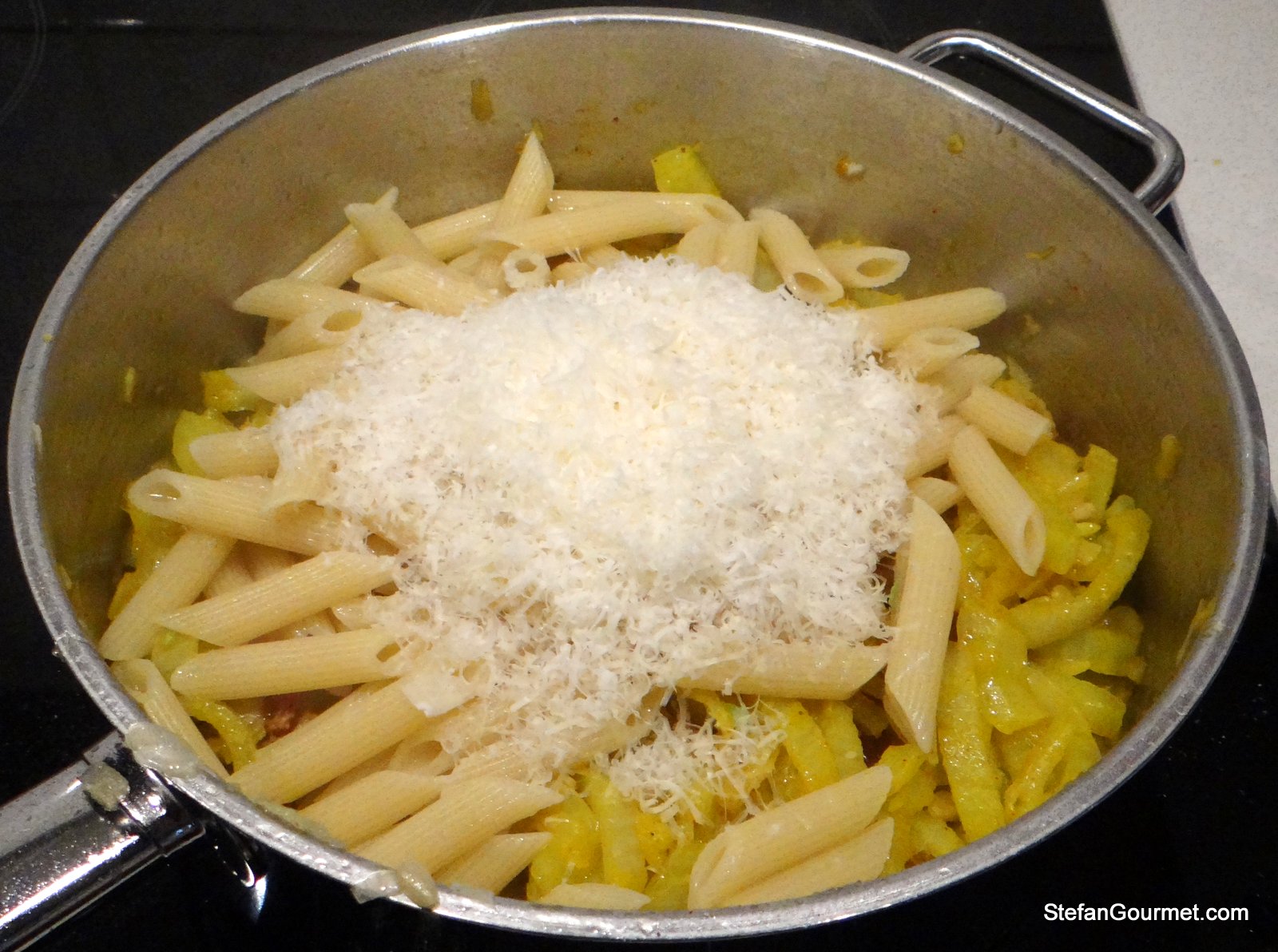 Drain the pasta and add it to the fennel with two handfulls of freshly grated parmigiano.