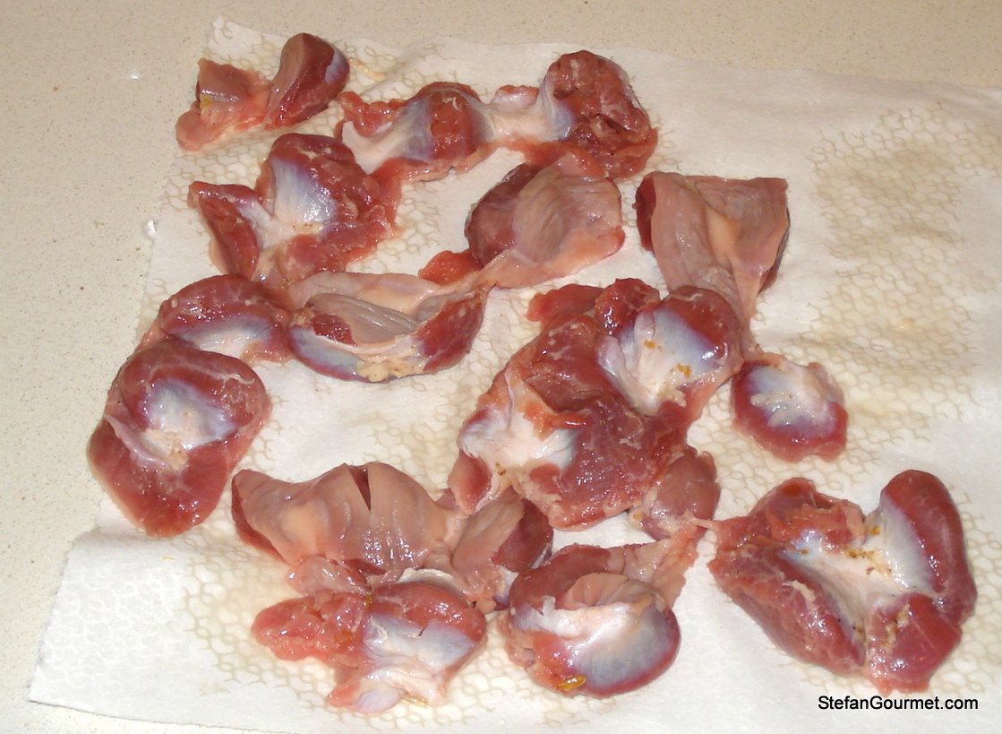 Rinse the chicken gizzards and pat them dry with paper towels.