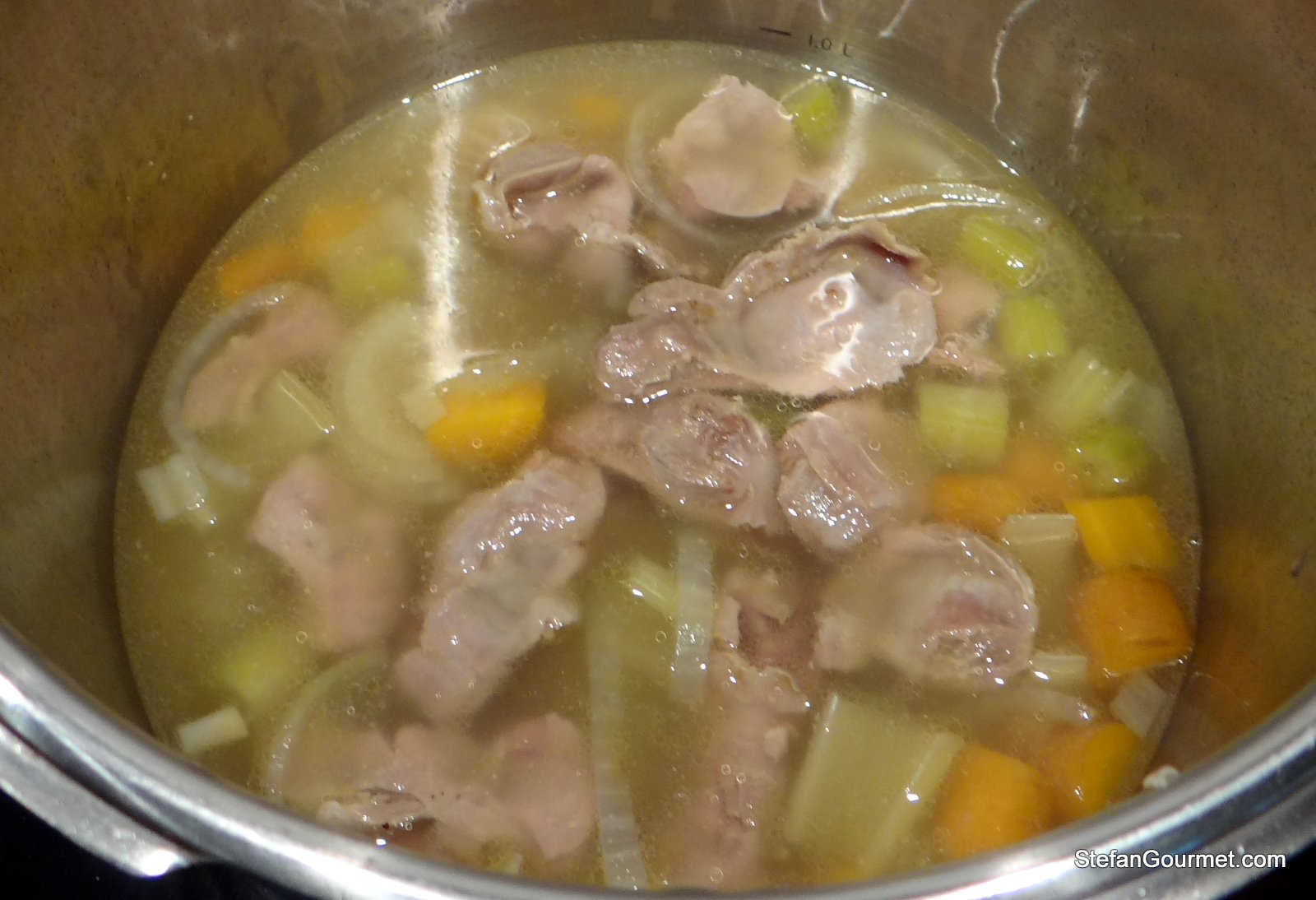 Cover and cook for 25 minutes (pressure cooker) or 90 minutes (regular cooking time) or until the gizzards are tender and you will have obtained chicken gizzard stock.