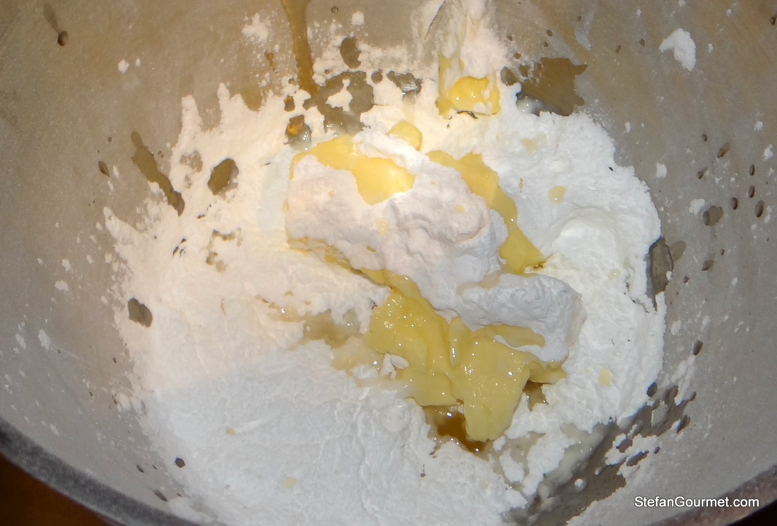 Meanwhile, prepare the easy butter cream by combining the butter, remaining confectioners’ sugar, and hazelnut liqueur.