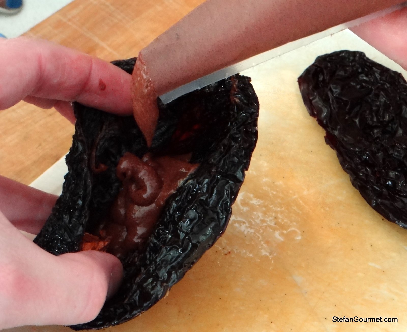 The combination of chile pepper, chocolate, cherries, and almonds worked very well. It is important to accurately remove the ‘ribs’ inside the chile, because that is where the heat is.