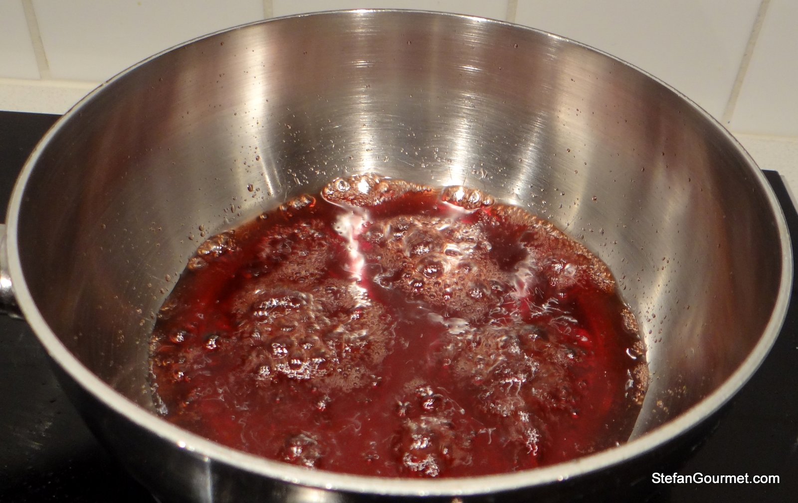 Reduce the syrup a bit over medium heat. Do not thicken it too much, as otherwise it will solidify when it cools off.