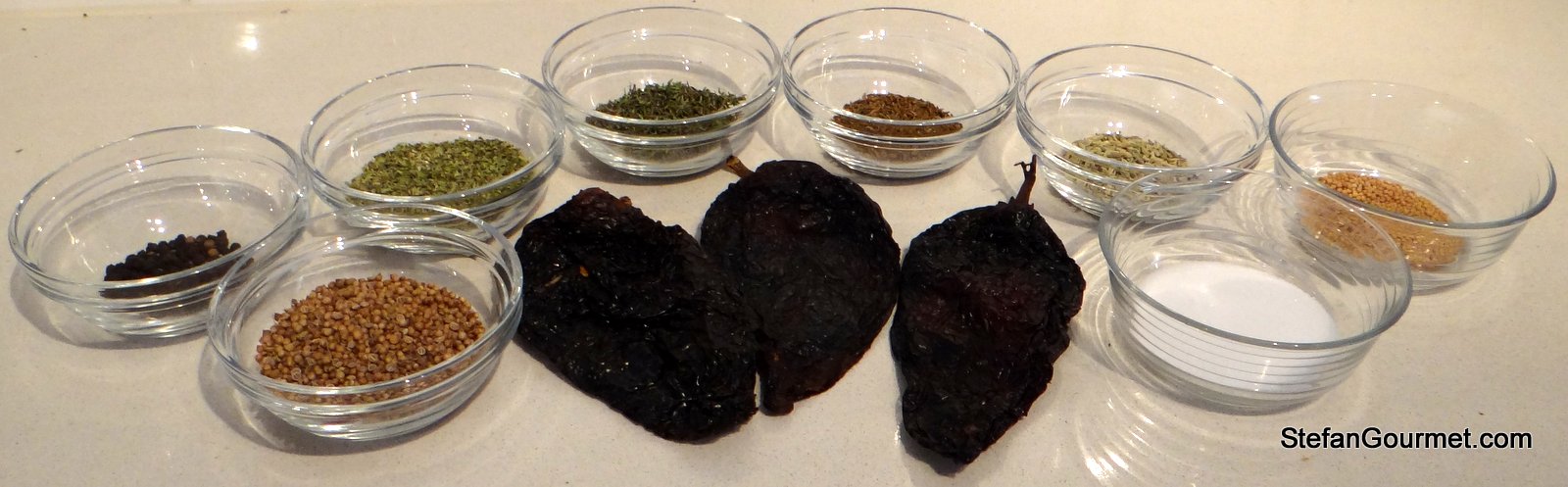 Months ago I received a surprise package from Richard McGary with a challenge and lots of chile peppers. One of the contents of the package was a jar with Richard’s homemade Ancho Chile Rub. This is a spice mix with ancho chile as the main ingredient that I liked a lot. I tried it with salmon and tuna. The ancho chile rub is not just spicy — it has a deep earthy flavor that goes well with both meat and fish. I liked it so much in fact, that I finished the jar that Richard sent pretty quickly. And so I had to make my own.