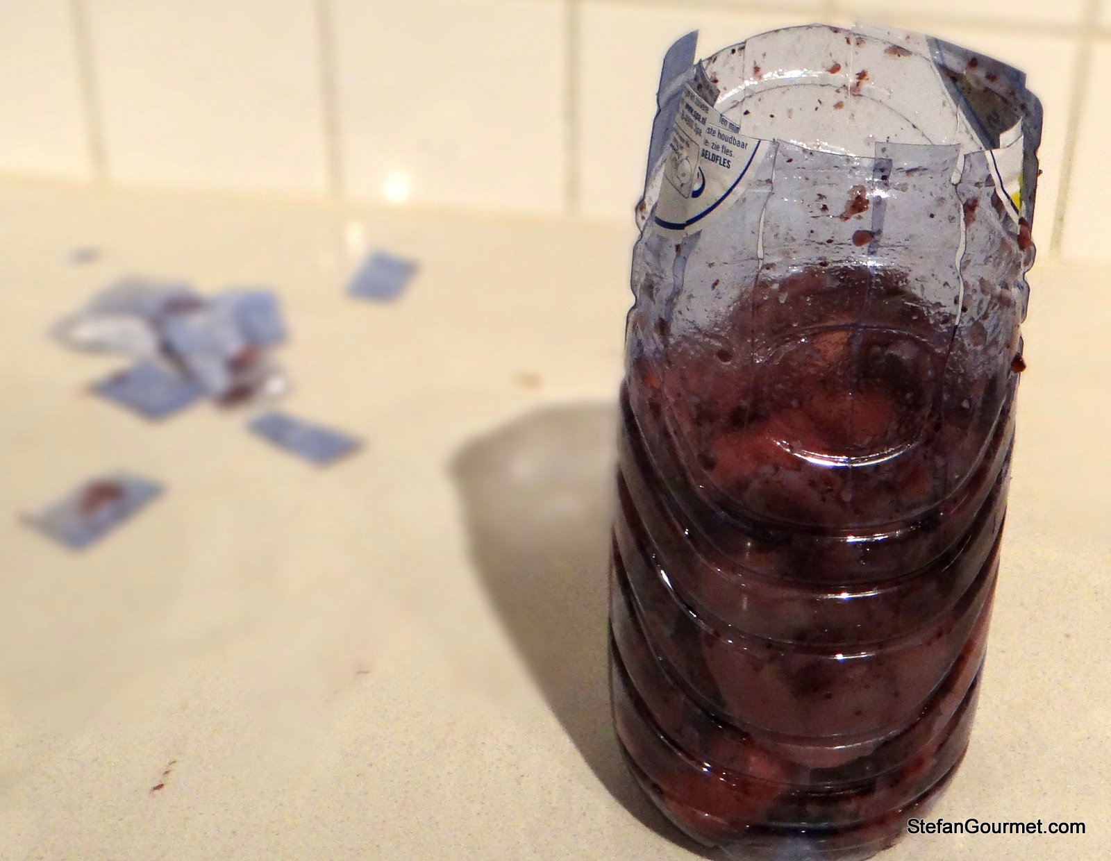 Cut away most of the bottle after those 4 hours. (Leaving the bottom of the bottle makes for a nice hold.)