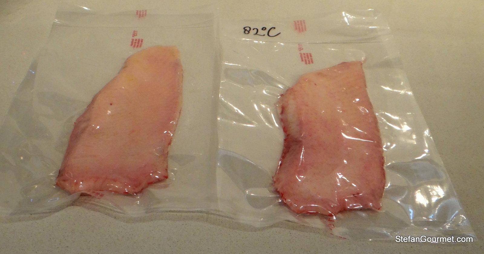 I wasn’t sure at what temperature to cook the skin, so I tried 82ºC/180ºF and 60ºC/140ºF.