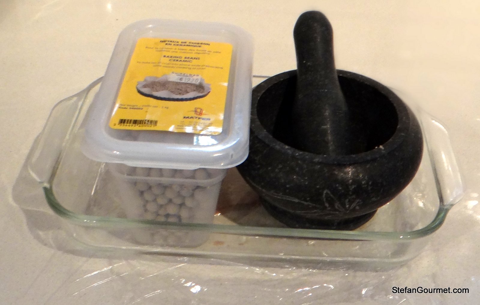 Then I put some heavy objects on the lasagna dish and waited until the warm skin had cooled off.