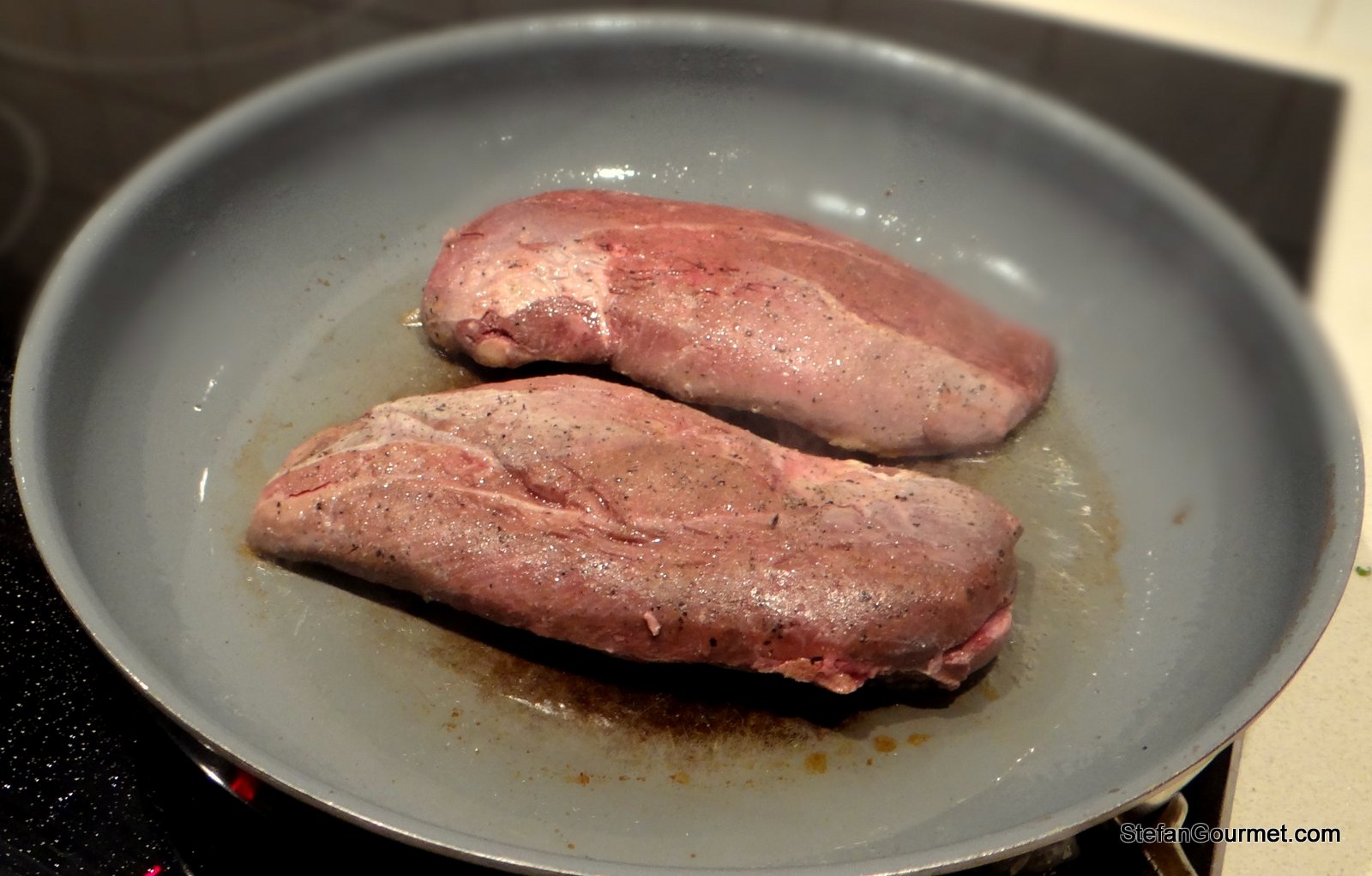 Then I allowed the duck breasts to rest briefly while I deglazed the pan with the sauce, and reduced it further until there was only about 80 ml (1/3 cup) left, or about 10%. Taste and adjust the seasoning with salt and freshly ground black pepper.