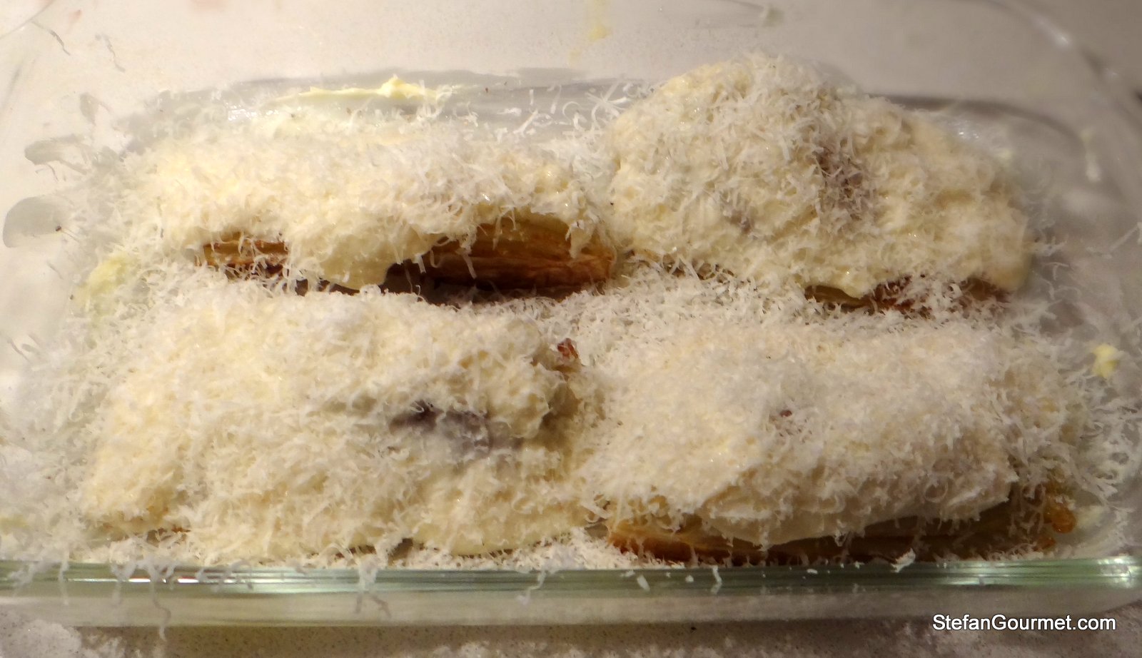Cover the fennel with the bechamel and a generous layer of freshly grated parmigiano reggiano.