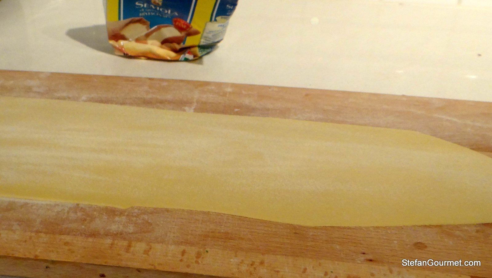 Prepare the pasta dough from the eggs and flour, using my instructions.