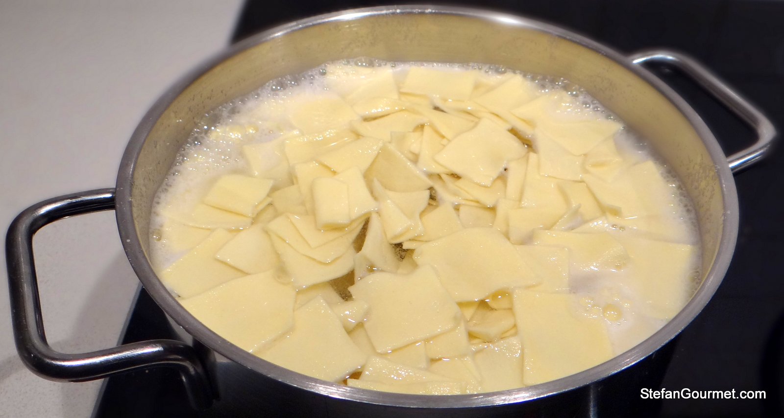 I bet it was fantastic! I make (or, rather, my mother makes and I copy) fresh tagliatelle with prosciutto – never thought of adding peas! Go figure. I love quadrucci (which, in Bologna, we call quadretti – and there you have all the intricacies of the Italian language) in a rich chicken broth. Stefan, you never fail to inspire me and make me feel like a slacker for not cooking on a daily basis!