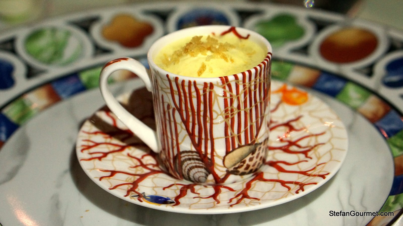 The other part was ‘caramelized’ lobster with shaved fennel and the same dressing as on the king crab cocktail. The oaked roussane/viognier from Gard in the south of France was very nice, but a bit strong for the subtle flavors of the dish. The seabass was perfectly cooked, but the risotto was not al dente and the stock was a bit low on flavor. 8/10