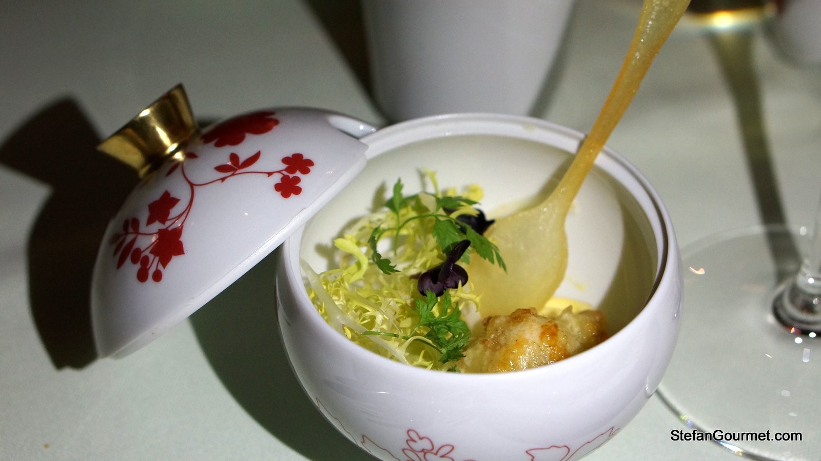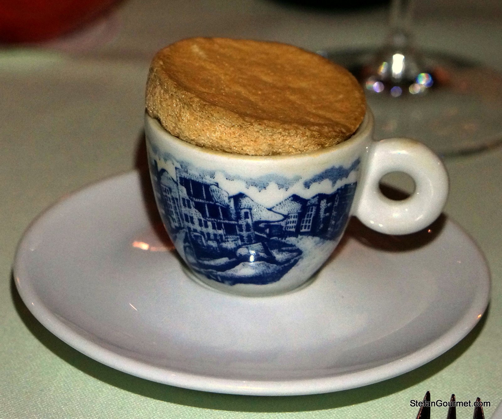 The red-legged partridge came with shaved truffle, sauerkraut, apple, and porcini mushrooms, a very classic dish. The 2006 ‘Schieferterrassen’ riesling (from a slate terror in Mosel) was very nice and worked quite well with the apple and sauerkraut, a bit less with the partridge. The partridge breast was tender and juicy, but the leg was tough and dry. This shouldn’t happen in any restaurant, and certainly not with two Michelin stars. Since it was a big portion for only the third course out of seven, we didn’t send it back and enjoyed the breast instead. 6/10