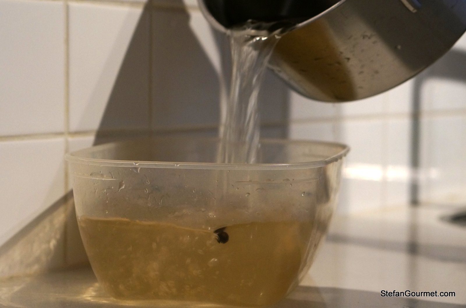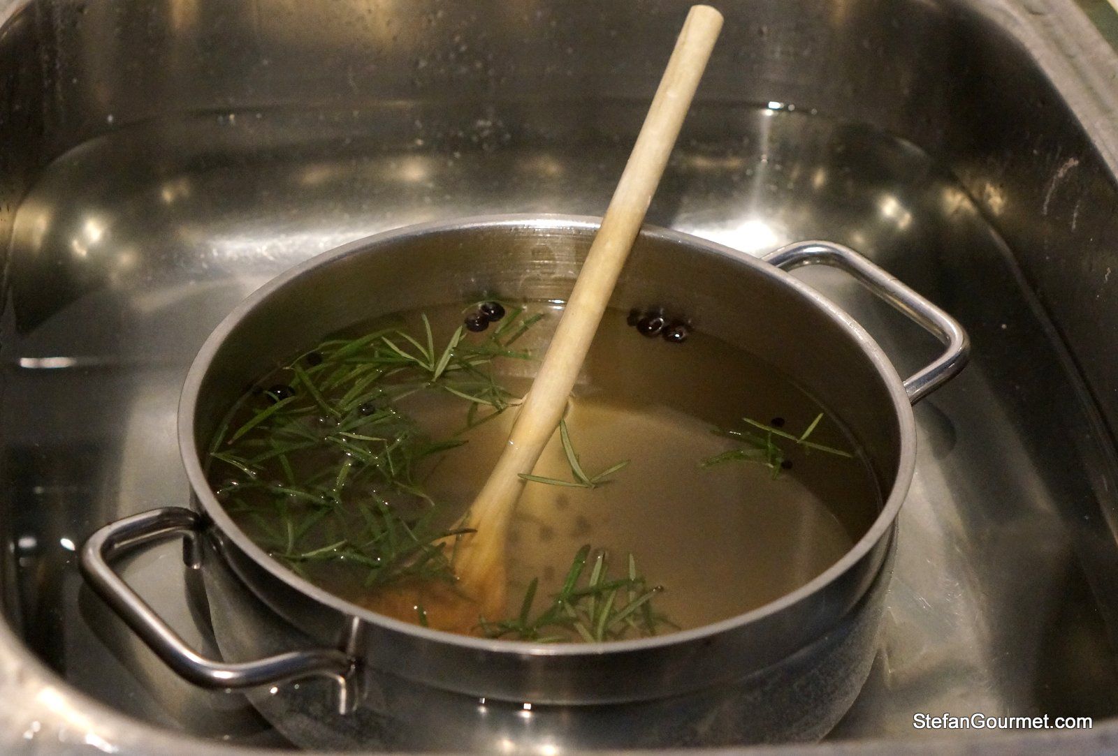 I chilled the lamb quickly in ice water (i.e. tap water, this time of year).