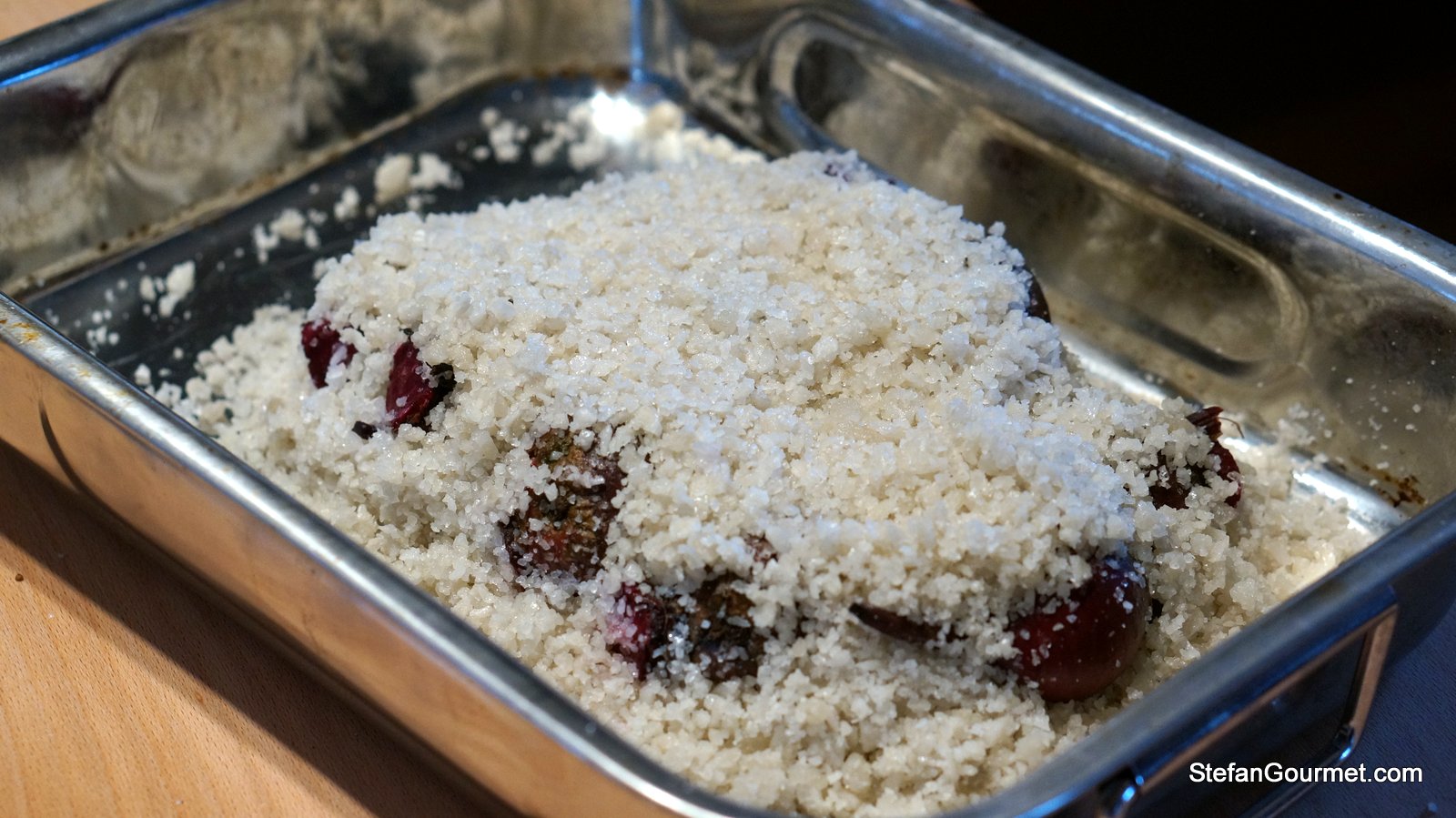 I then covered them with sea salt. They should actually be covered completely, but I ran out of coarse salt and on Christmas day I couldn’t buy any more.