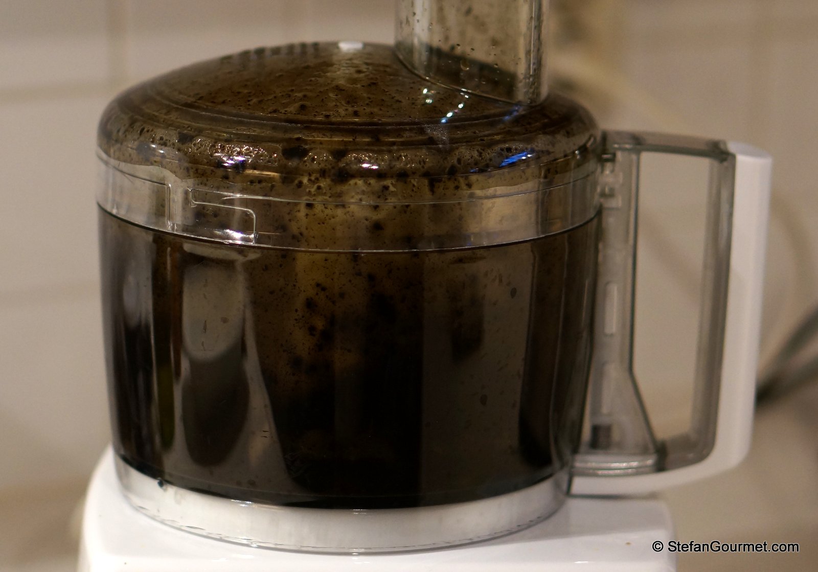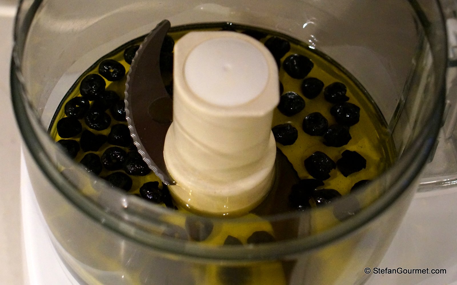 Dehydrate 150 grams of pitted black olives at 60ºC/140ºF for 12 hours until brittle.