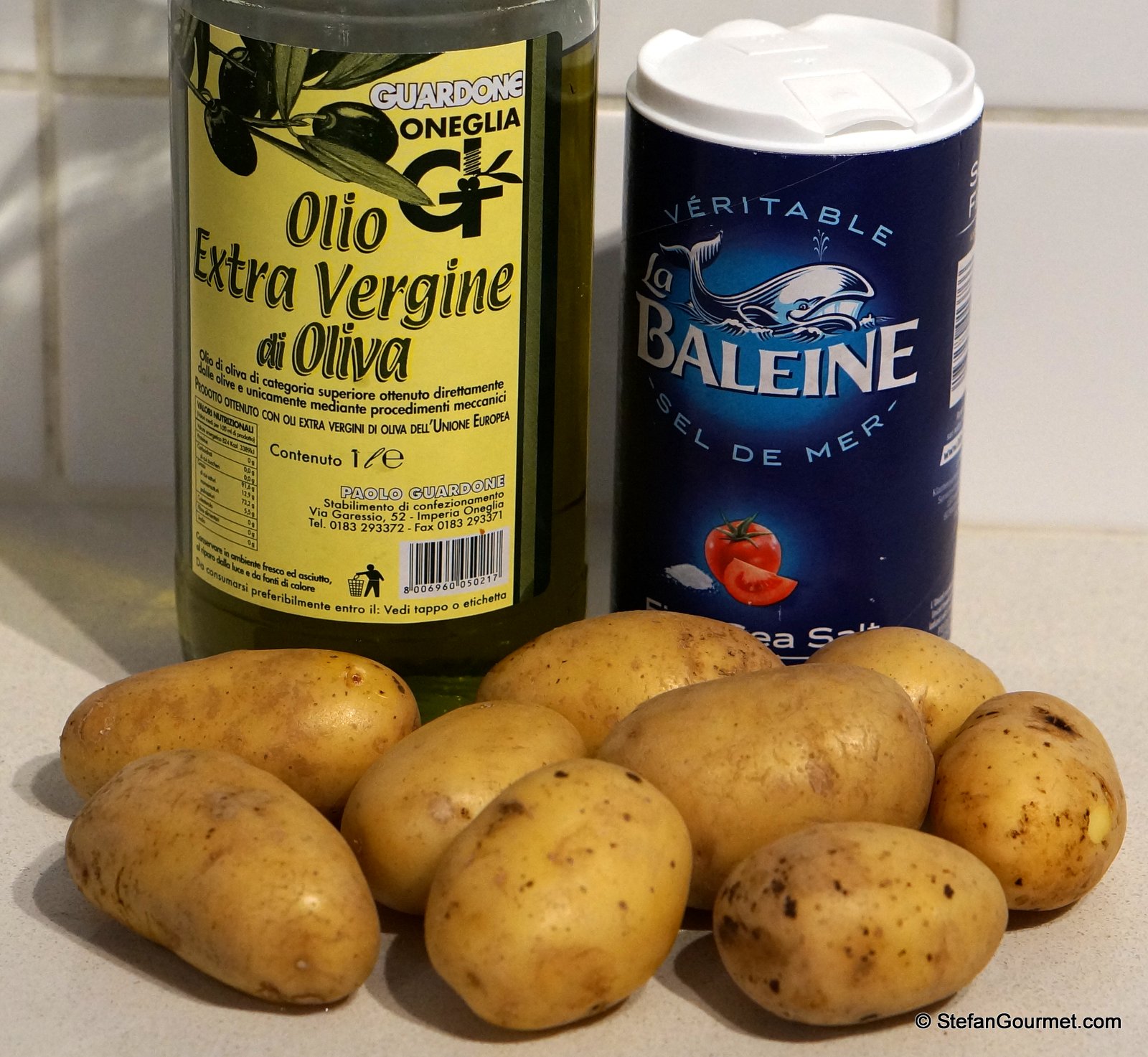 Ingredients are potatoes, olive oil, and salt.