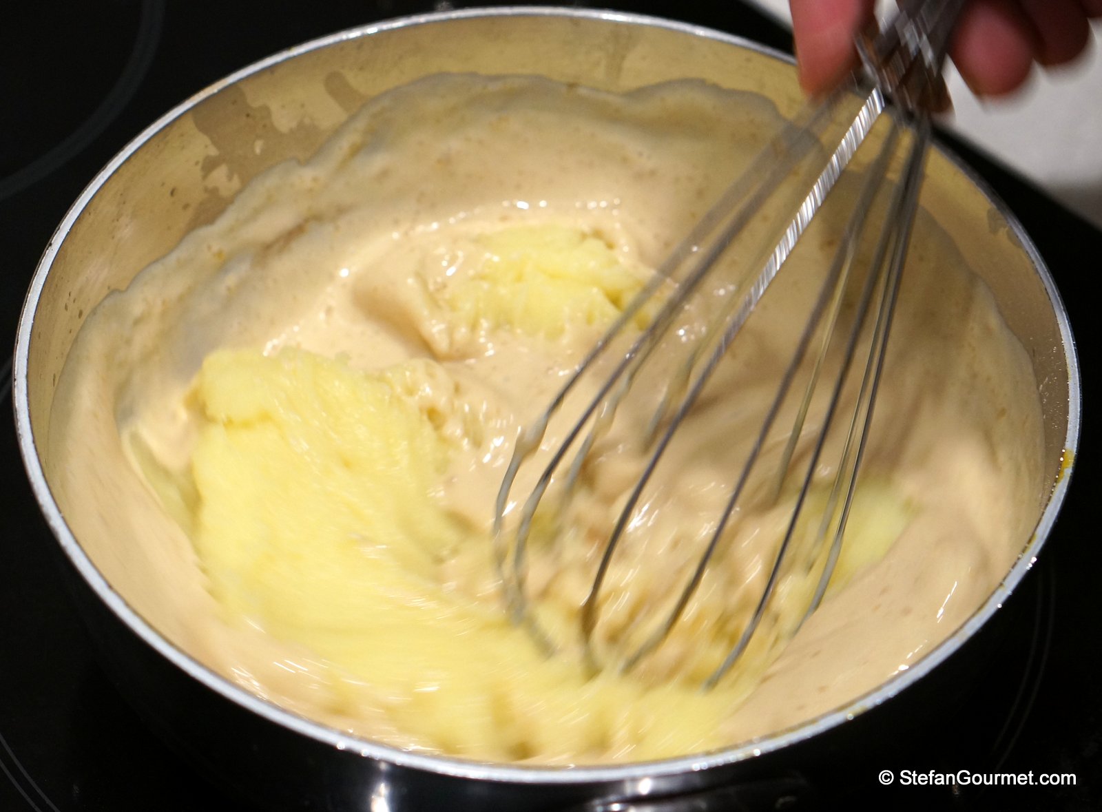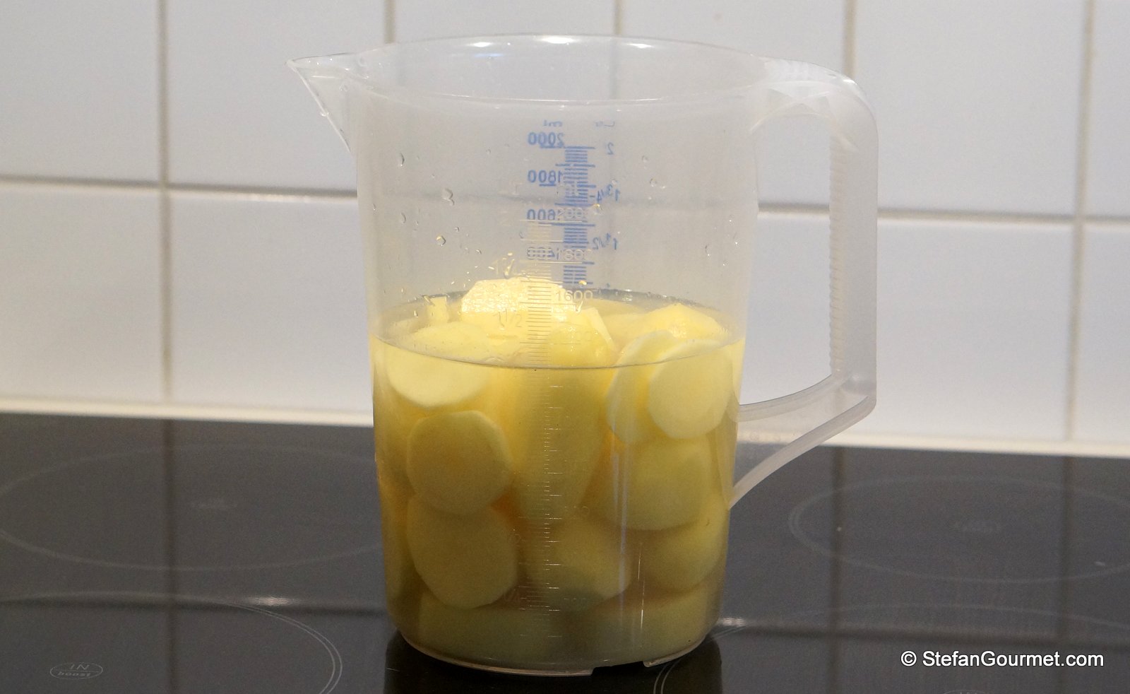The book says to season the baked potato broth with salt, but it is better to do this later as you do not know yet exactly how much of the baked potato broth you will need to make the foam.