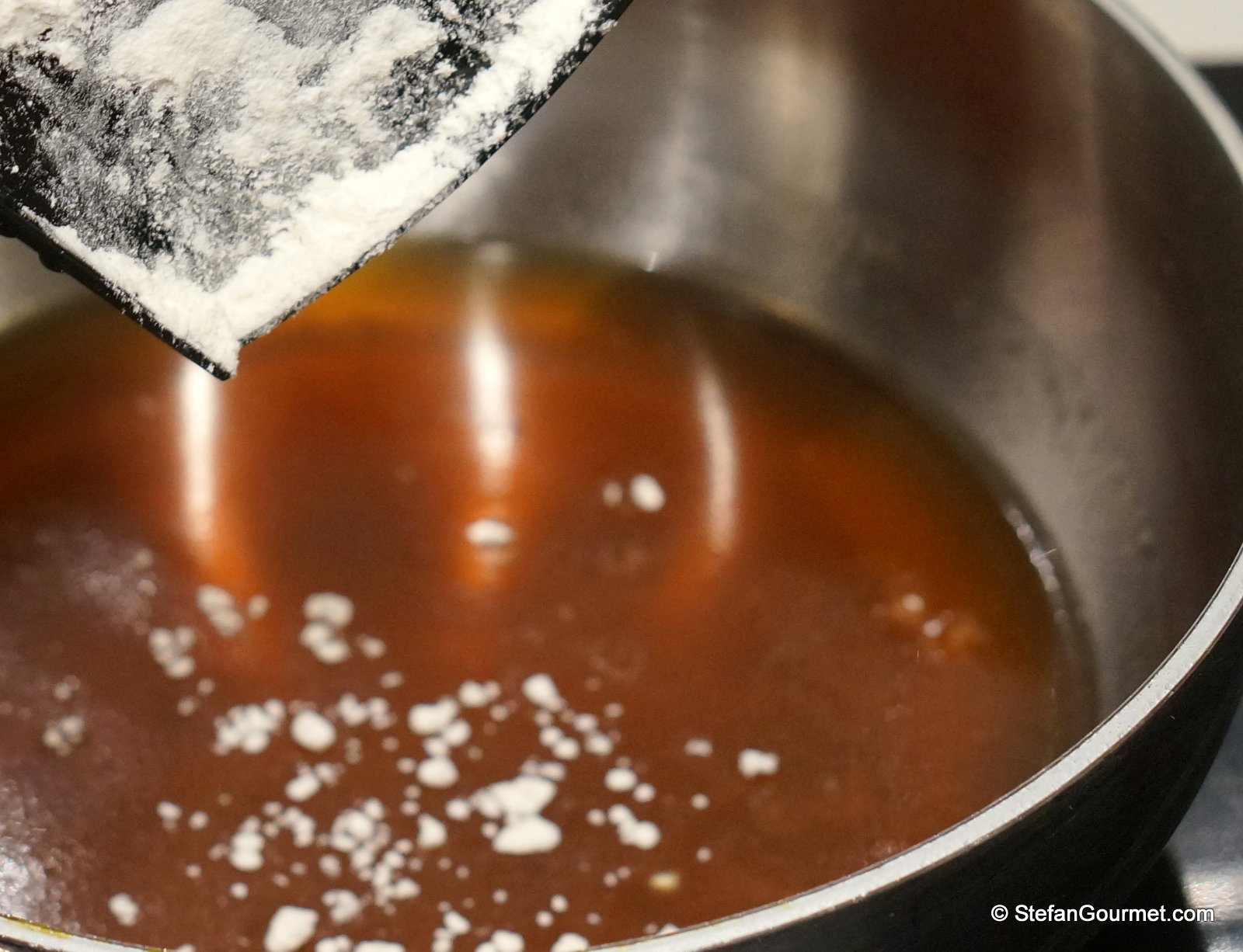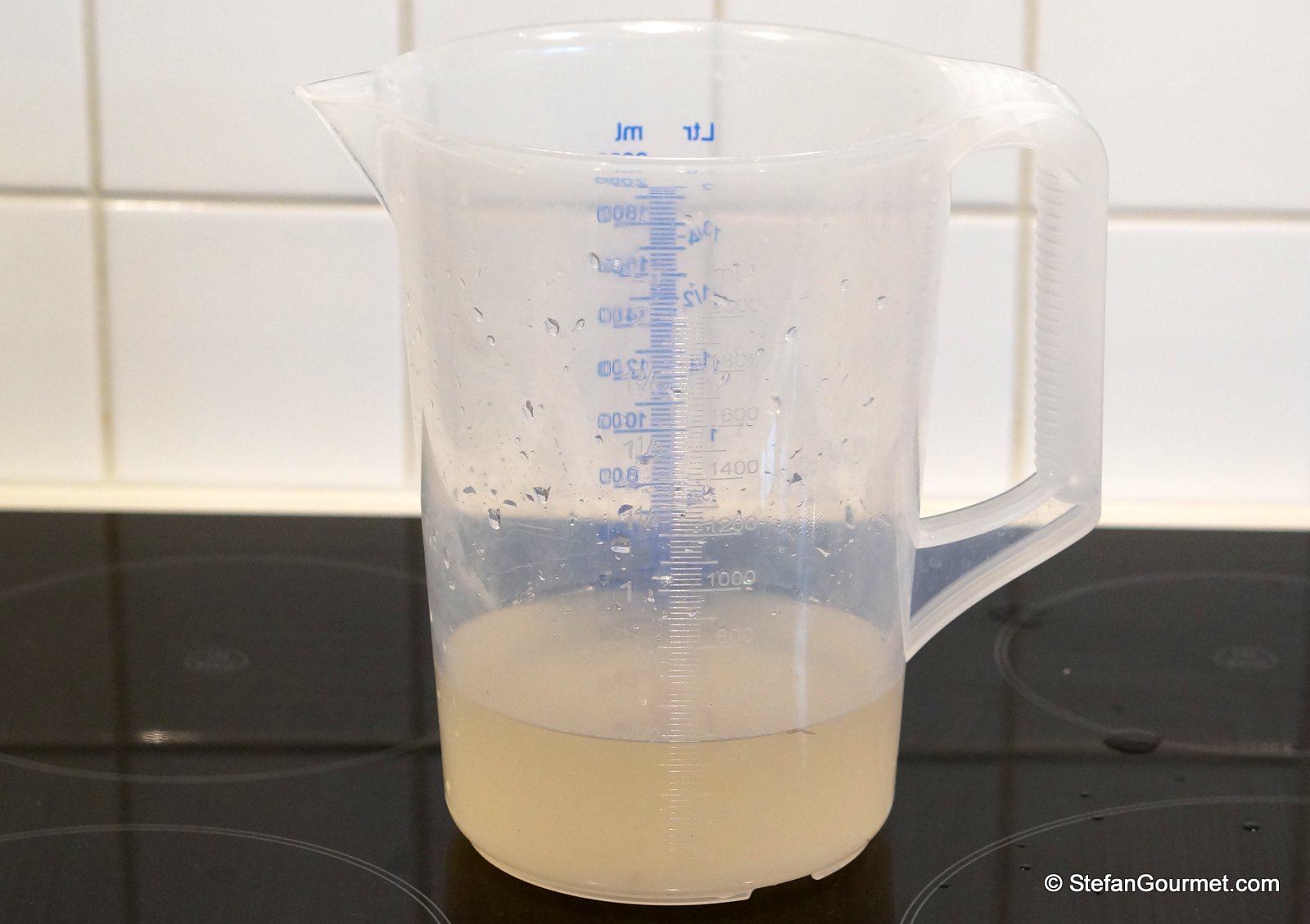 Disperse the iota carrageenan and xanthan gum into 150 grams of the cold (!) broth.