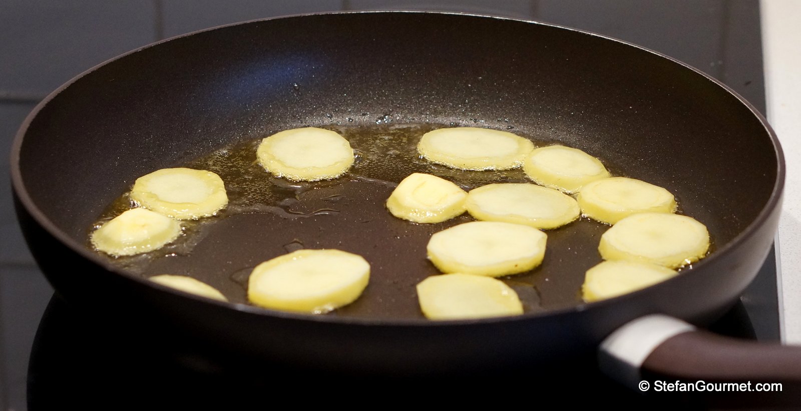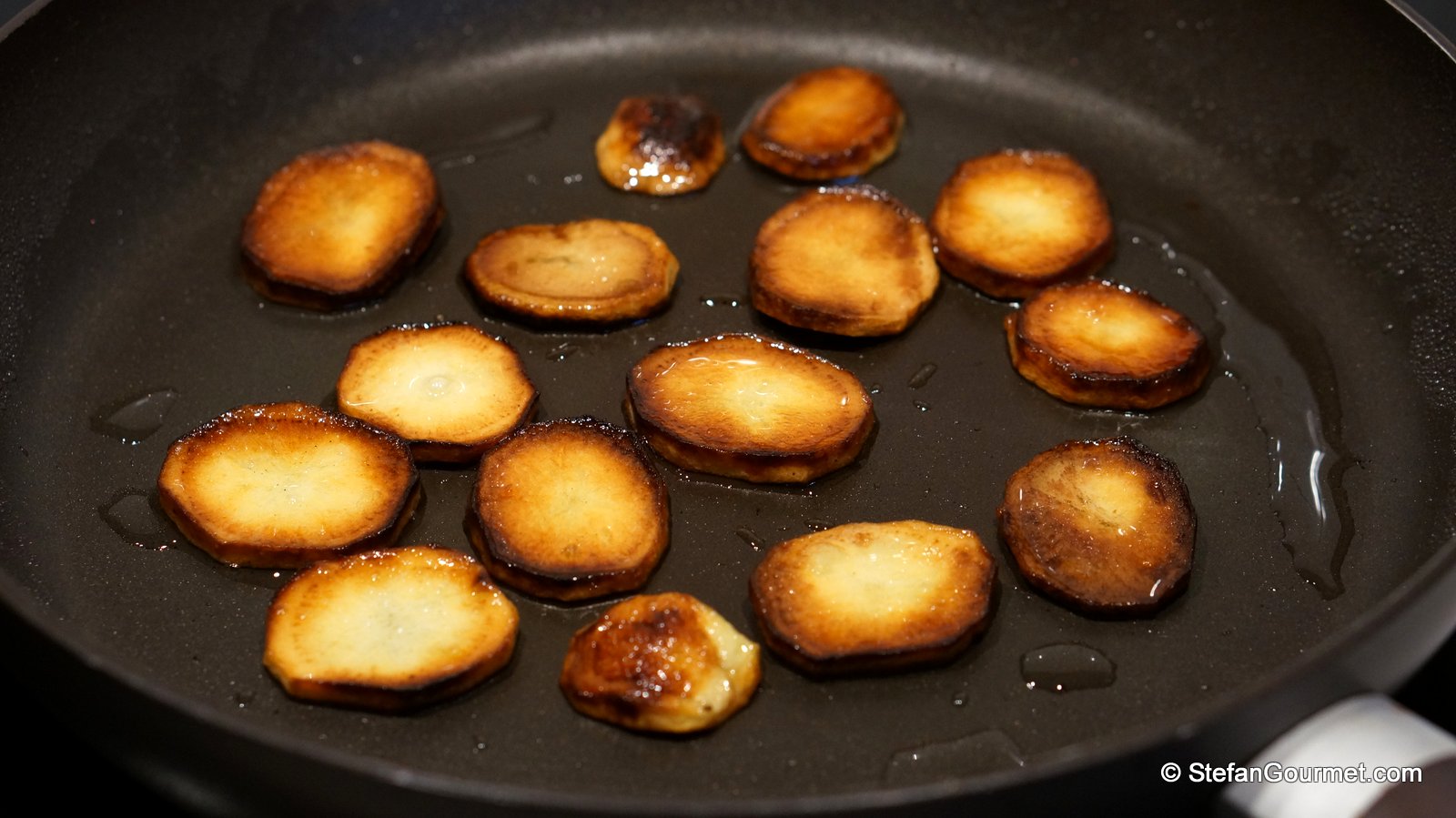 Fry them over medium heat until deep golden, about 15 minutes per side.
