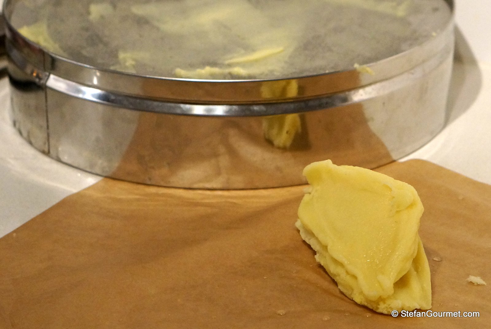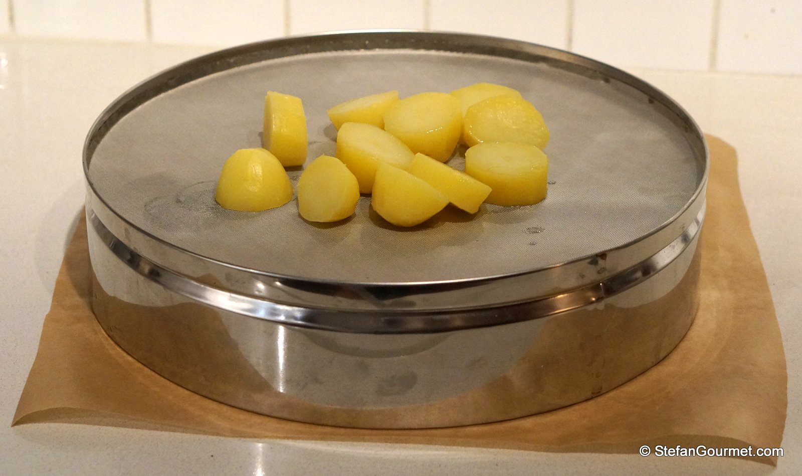 Press the potatoes through a fine tamis…