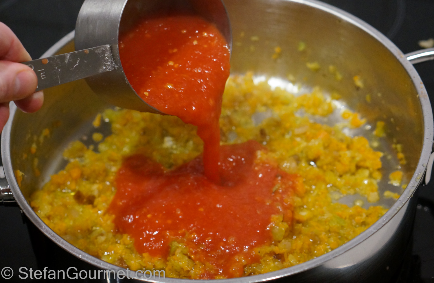 200 grams/7 oz peeled tomatoes (1/2 can), pureed in the food processor