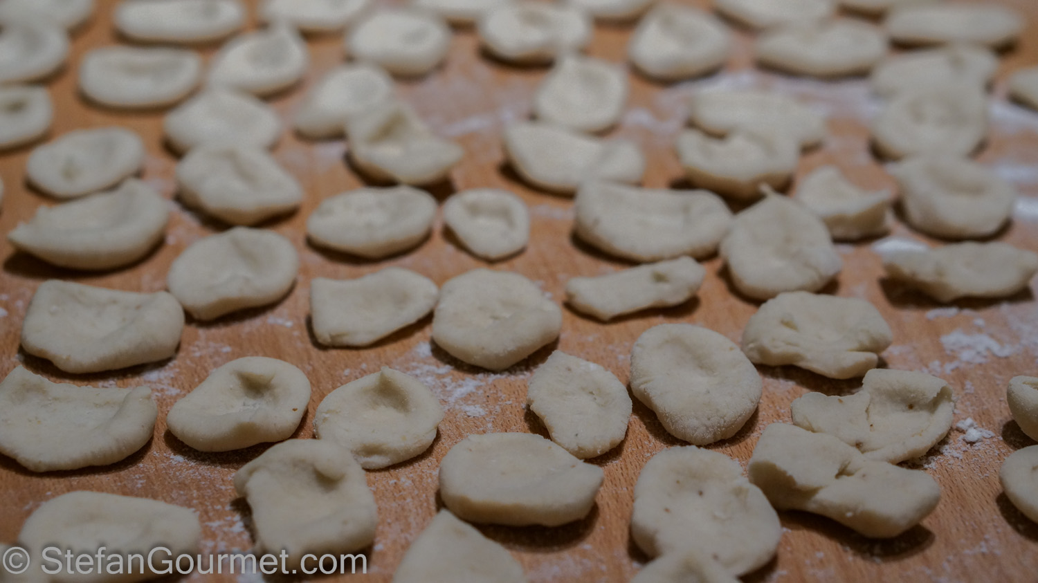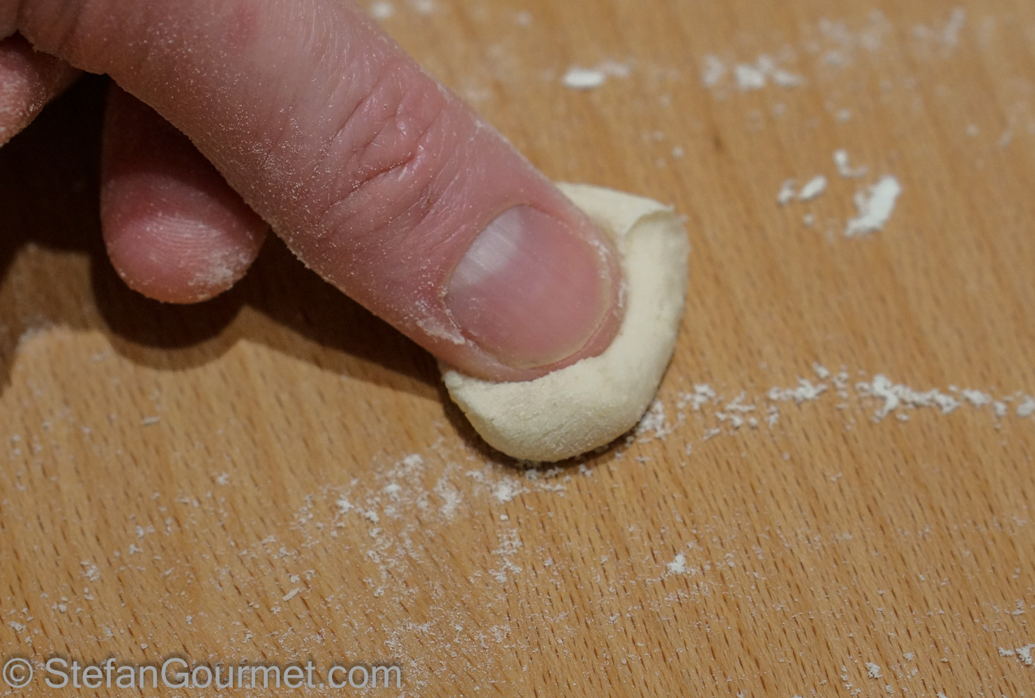 I have made a few different types of gnocchi but I have never encountered the breadcrumb variety. The shape is a bit like ‘cat’s ear’ pasta.