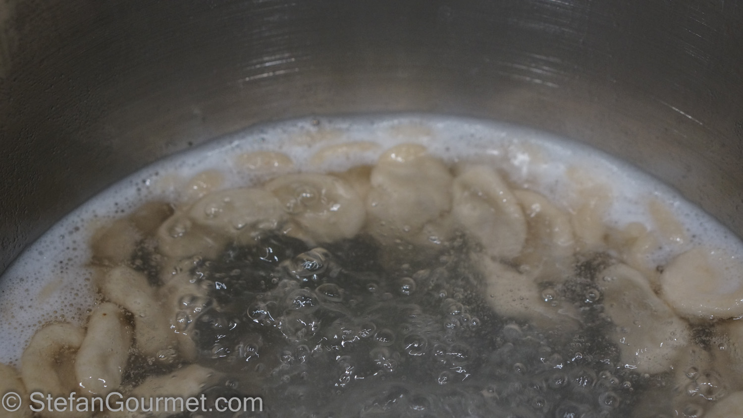 Bring a large pot of salted water to a boil and add the pisarei. They are cooked as soon as they float to the surface.