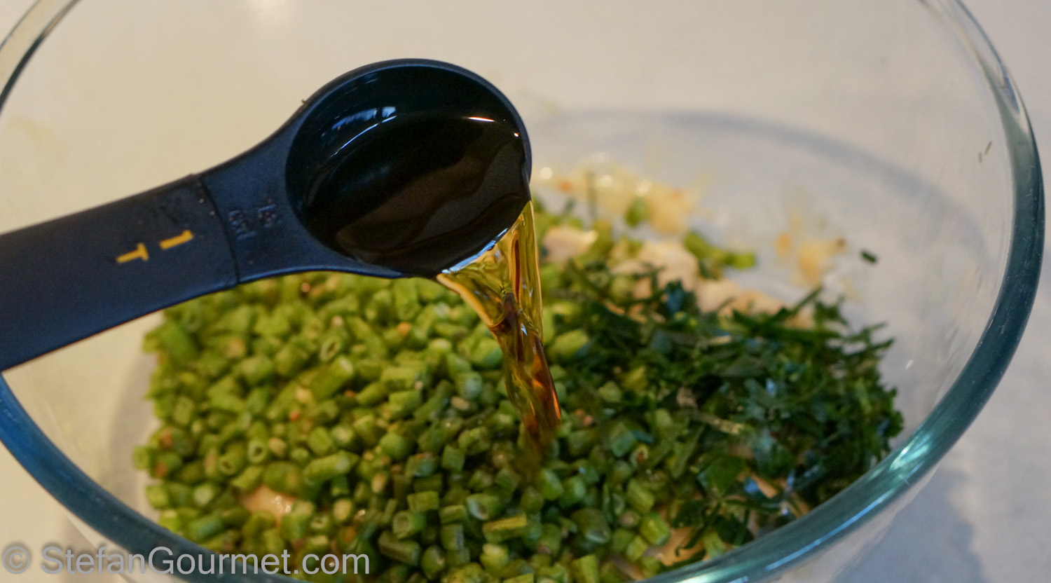 Allow the mixture to firm up in the refrigerator while you finish the dipping sauce.