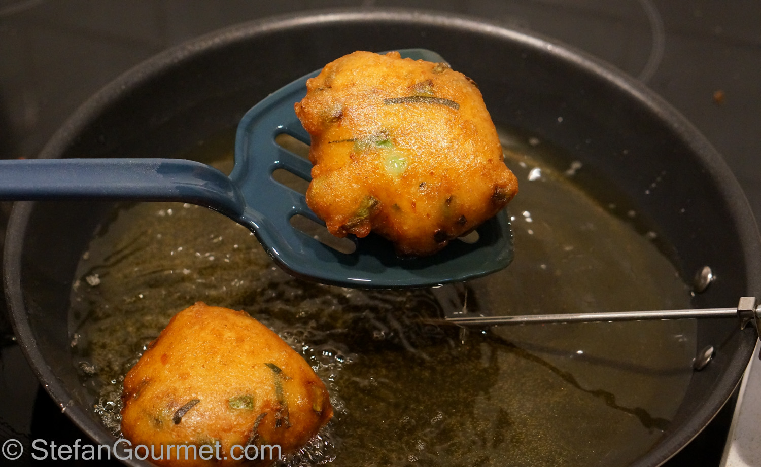 I’ve not made these myself but I have enjoyed restaurant versions…. It was much more the unusual texture that made these enjoyable for me…. must have something to do with the ‘playdoh’ consistency of the raw mix?