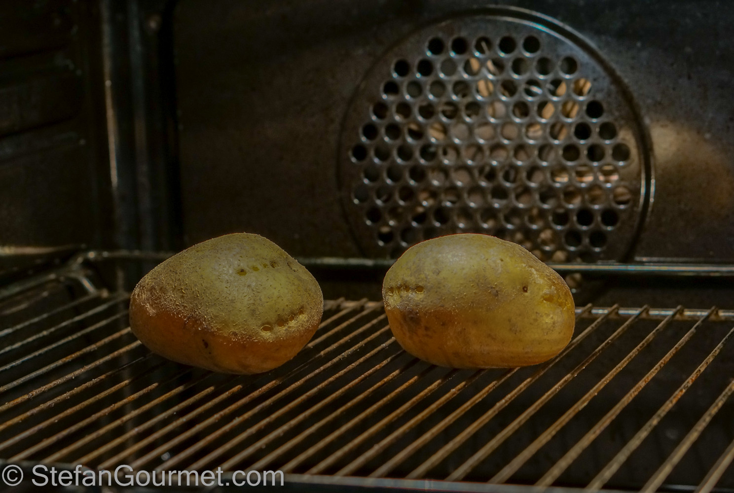 Preheat the oven to 190ºC/375ºF. Pierce the potatoes a few times with a fork.