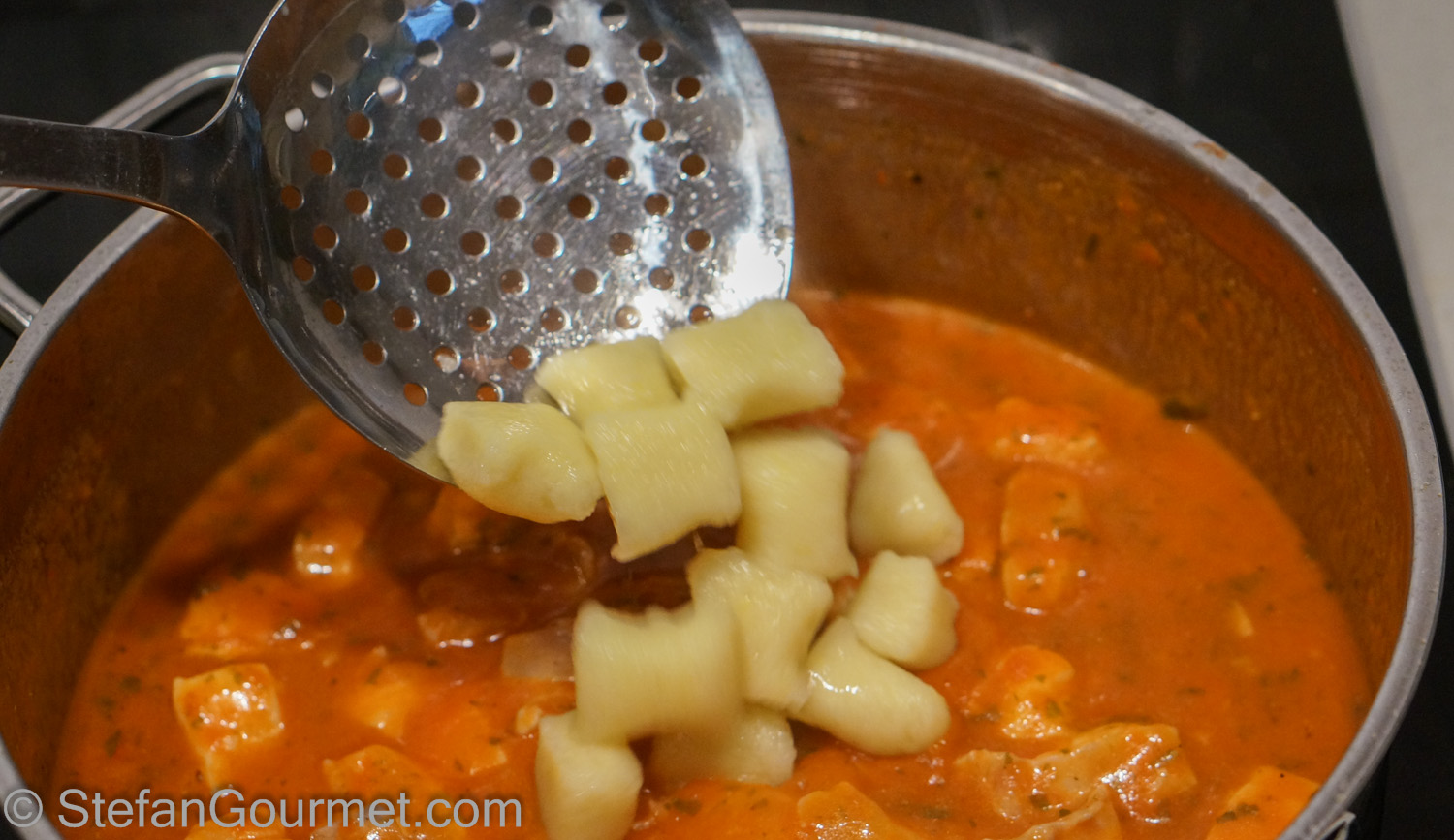 Remove the gnocchi from the pot with a slotted spoon as soon as they float…