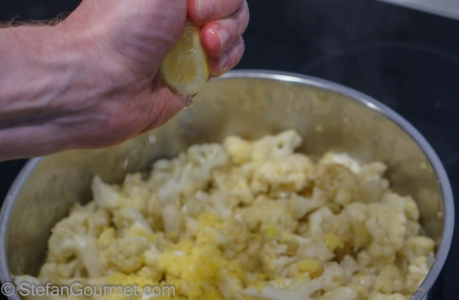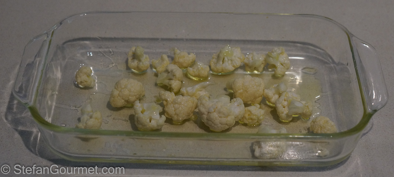 Preheat the oven to 200ºC/400ºF. Toss the reserved cauliflower with olive oil so it is completely coated.