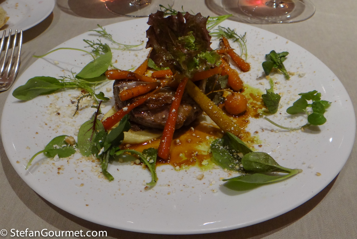 The pigeon with mustard, corn, and carrots was very nice. Also in this case it was important to taste everything together: together with the crispy corn and the sauce the pigeon was delicious. 9/10 The Barolo from 2007 was unfortunately too young and didn’t work very well with the pigeon. With an aged Barolo this dish would have been awesome.