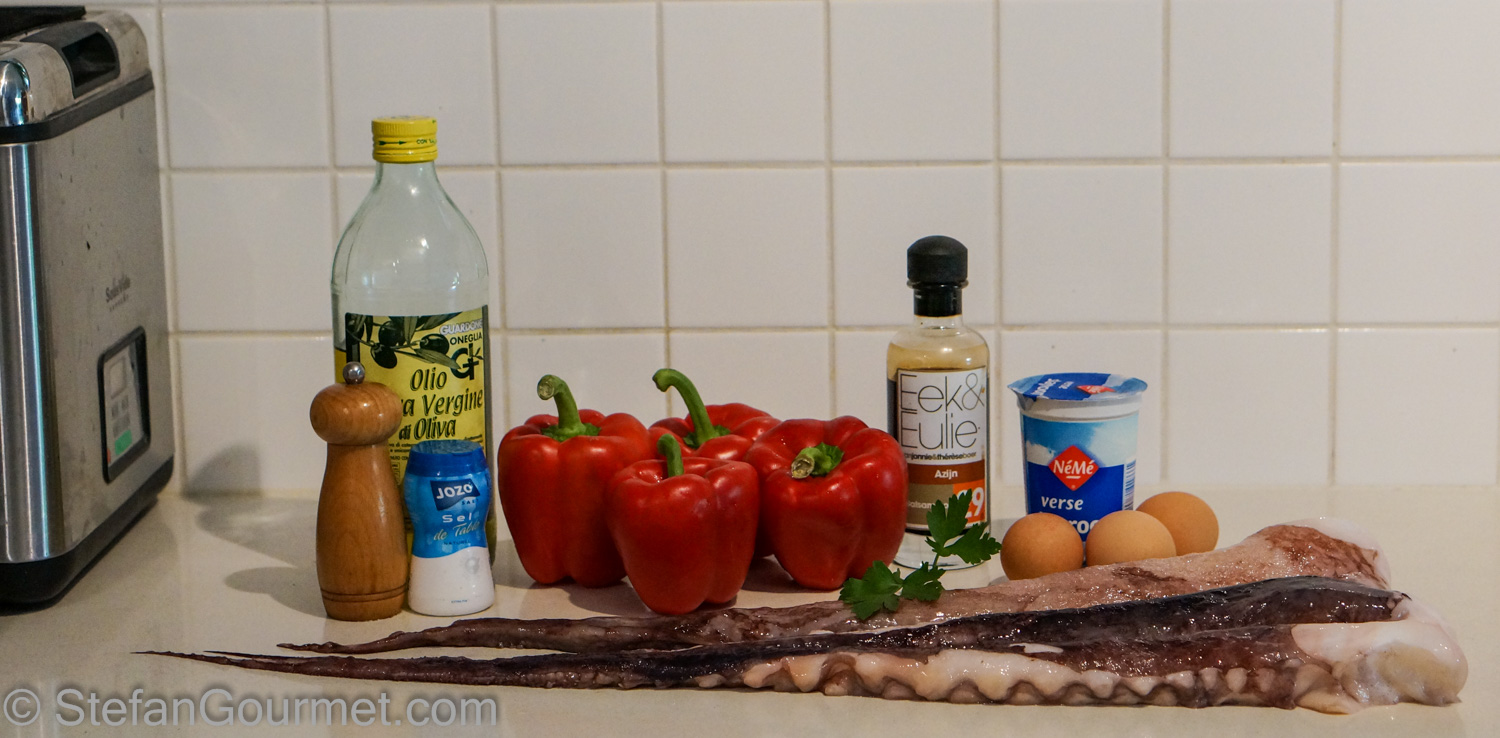 2. What a fantastic and innovative recipe! Must admit I have not made savoury ice cream and this one is a magnet!! Especially with red peppers of which I am never far away. Alright, I do not sous vide but have a pretty dab hand with both squid and octopus to get good results in the classic manner 🙂 ! Surely thank you for this idea!!!!