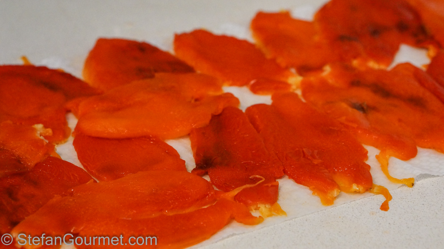 Pat the bell pepper dry with paper towels. You should now have about 400 grams (.9 lb) of bell pepper.