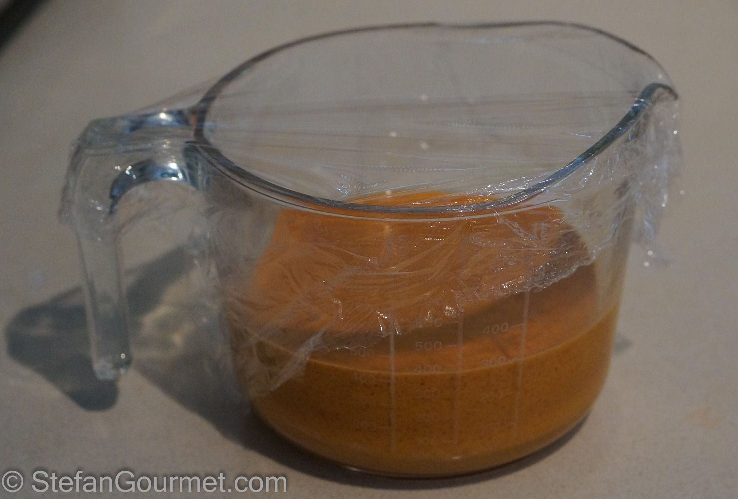 Transfer the mixture to a jug, cover with plastic wrap, and refrigerate until completely cold.