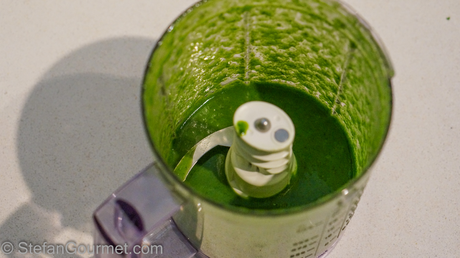 Put a handful of parsley in the blender with 60 ml (1/4 cup) of good extra virgin olive oil.
