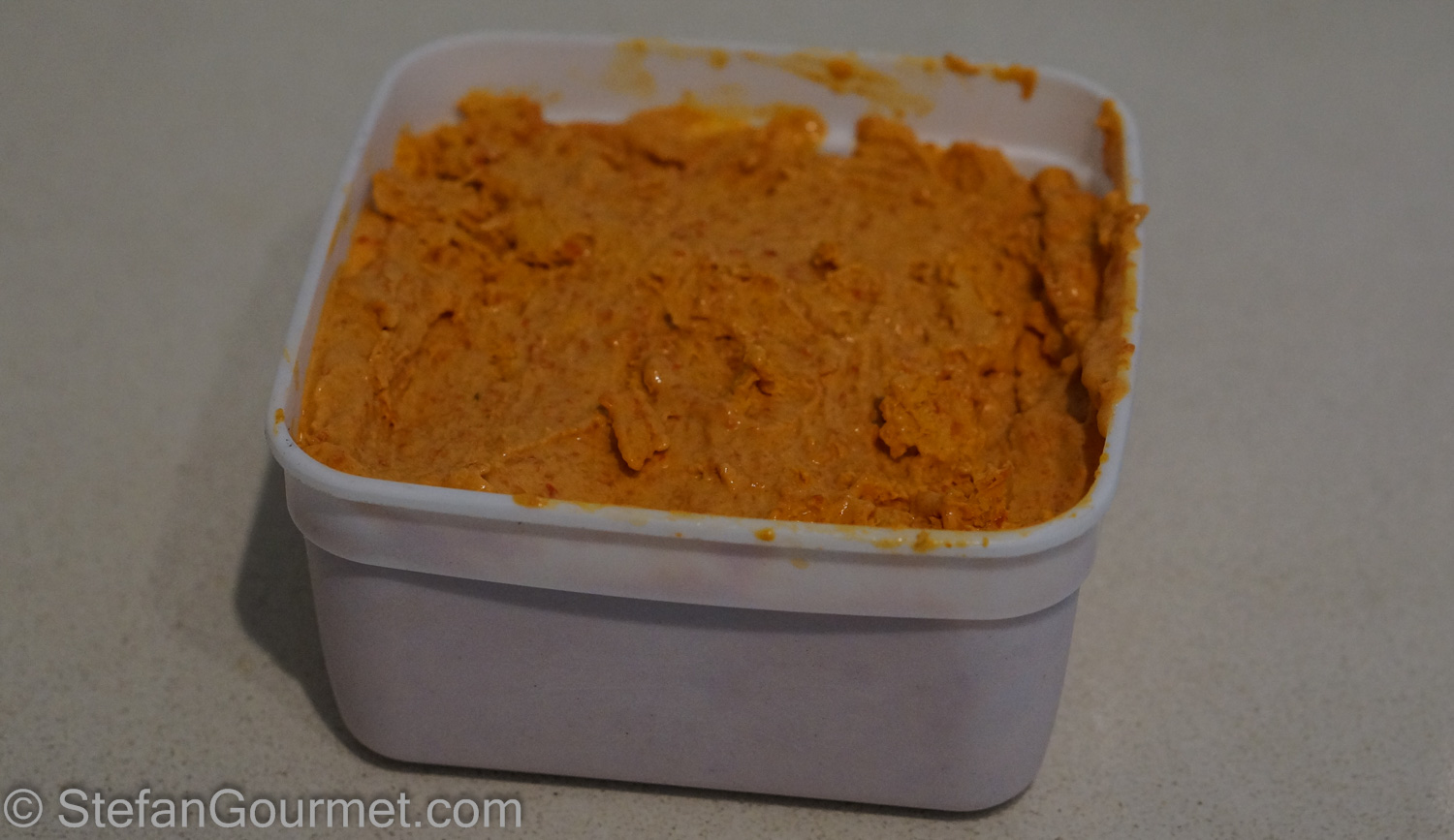 …transfer it to a plastic container and put in the freezer for a couple of hours to firm up.