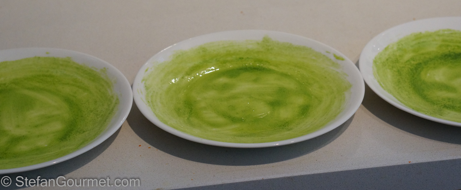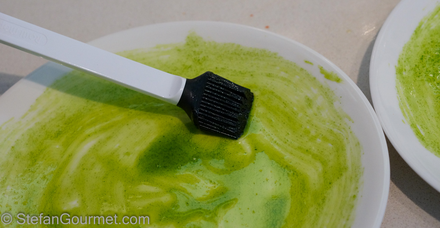 Brush the plates with the parsley oil.