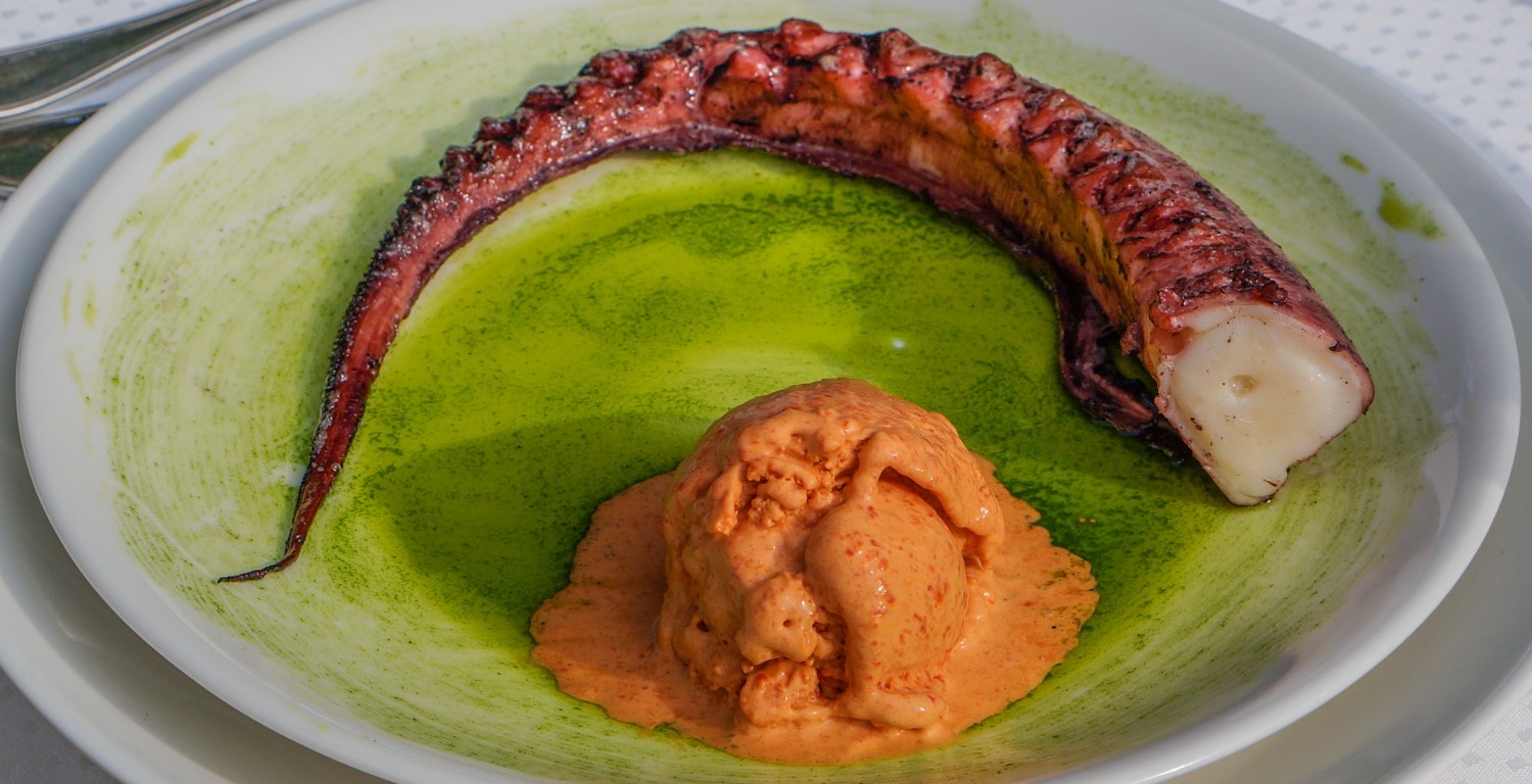 Grilled Octopus with Roasted Bell Pepper Ice Cream