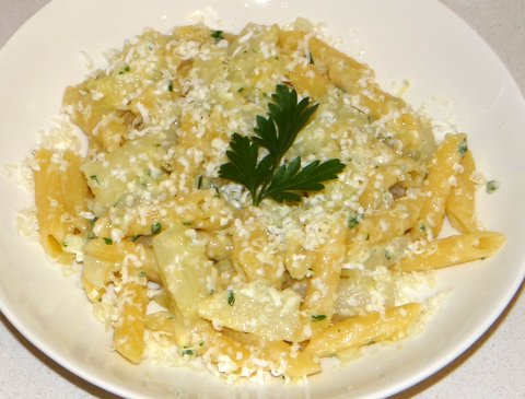 Pasta with white asparagus and goat cheese is a dish I invented myself that is very nice with a glass of good Sancerre or Pouilly-Fumé. Since both the asparagus and the cheese go well with this wine, it was not a surprise that all three went together like a charm.