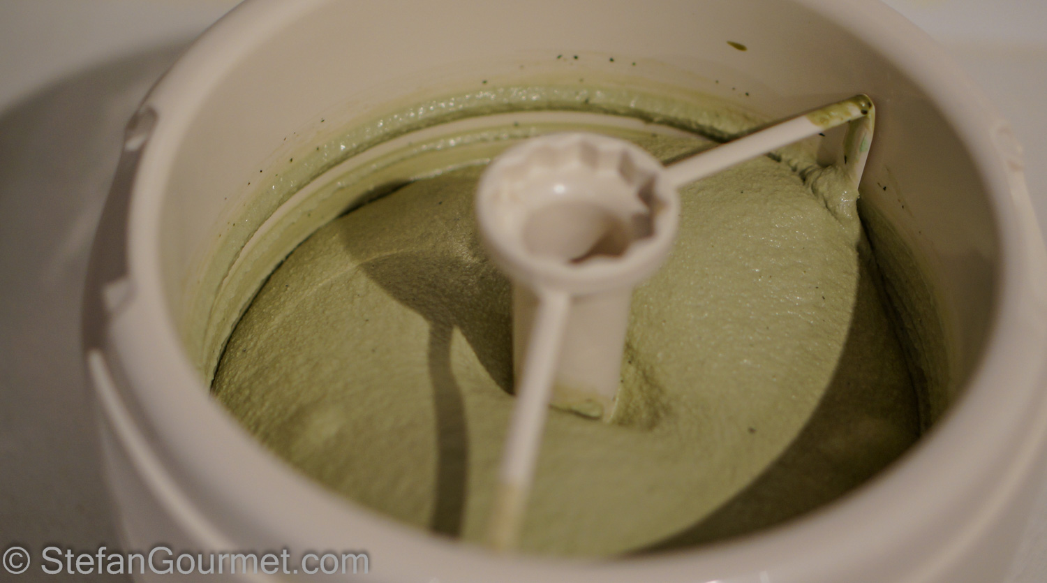 Churn the mint custard in your ice cream maker according to the manufacturer’s instructions.