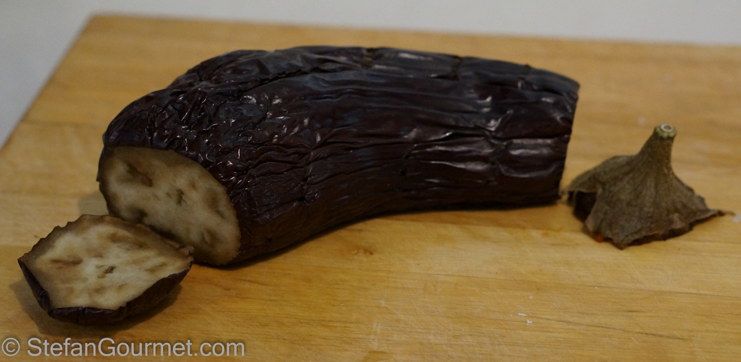 Roast the eggplant at 225ºC/440ºF until tender, about 1 hour.
