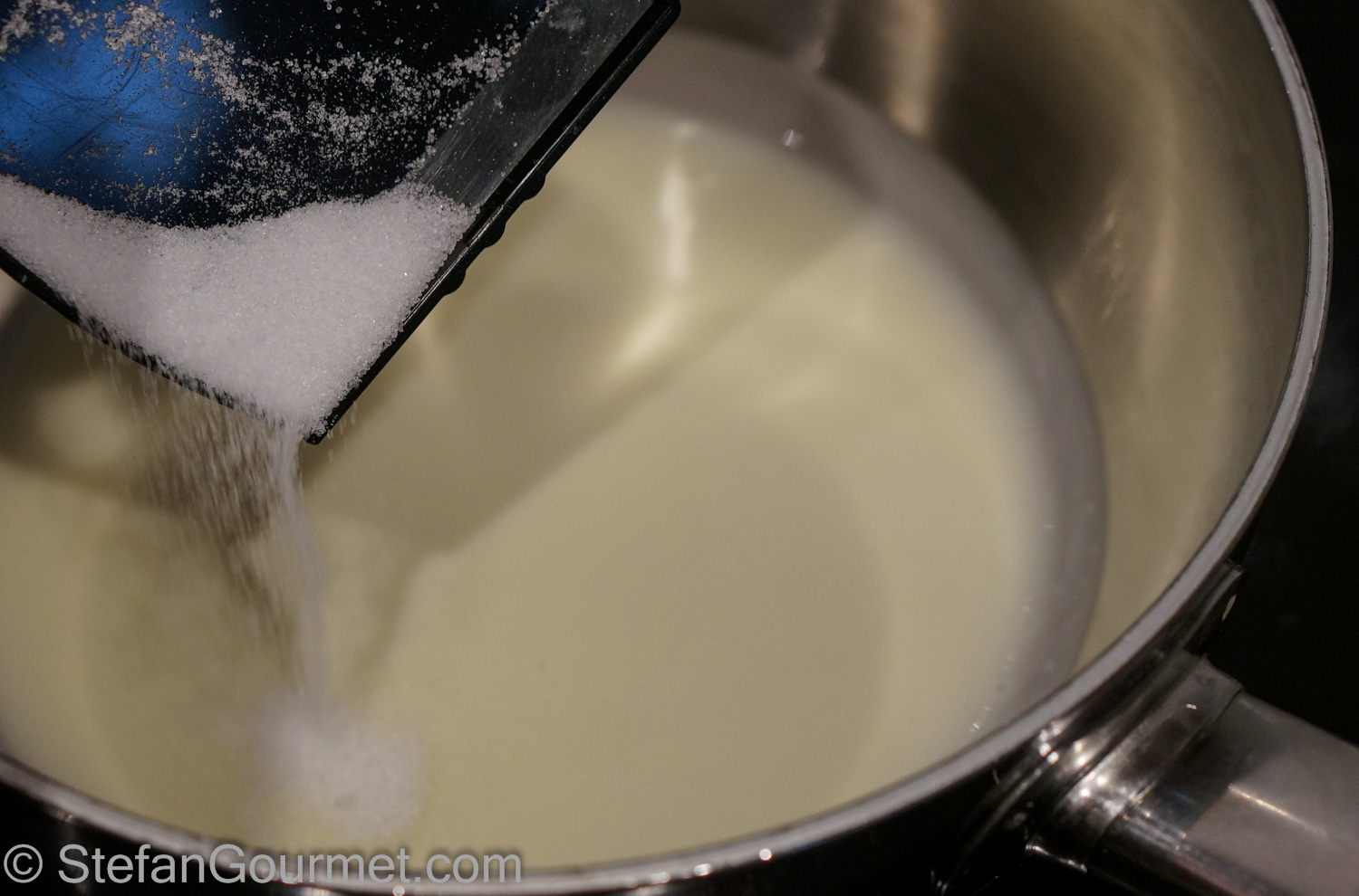 The recipe in itself is very simple, as it is intended to make the pure flavors of eggplant, tomato sauce, parmigiano, and pesto shine. To facilitate the cheese sauce I used a trick from Modernist Cuisine, which is to add sodium citrate to the milk to avoid the sauce from curdling. It worked like a charm. You can make the cheese sauce without the sodium citrate, you will just have to be very careful not to overheat the sauce as it will curdle easily. Here’s what I did.