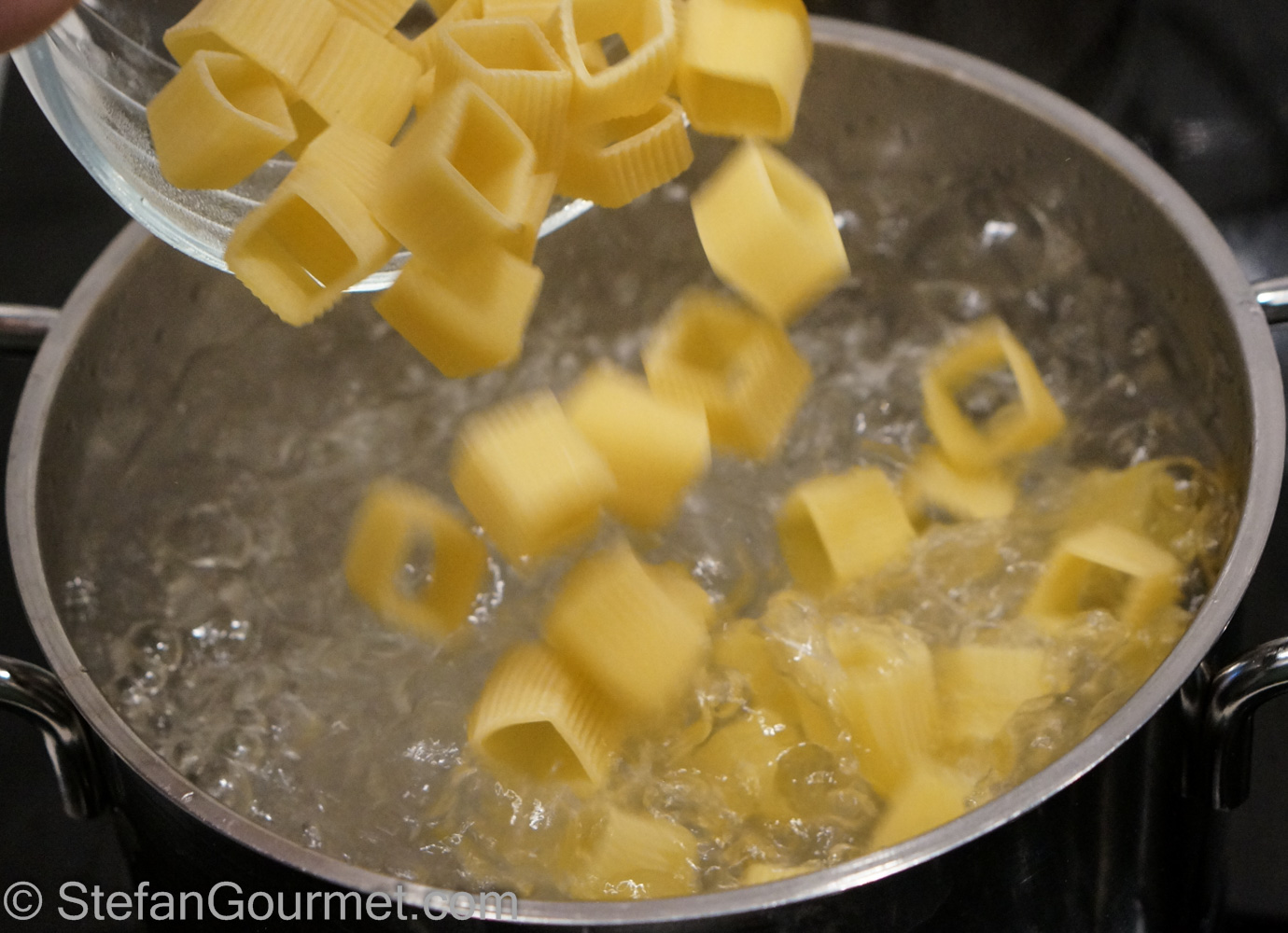 soqquadri pasta, mezze maniche or mezzi rigatoni, 16 pieces per serving (plus some extra in case some of them break)